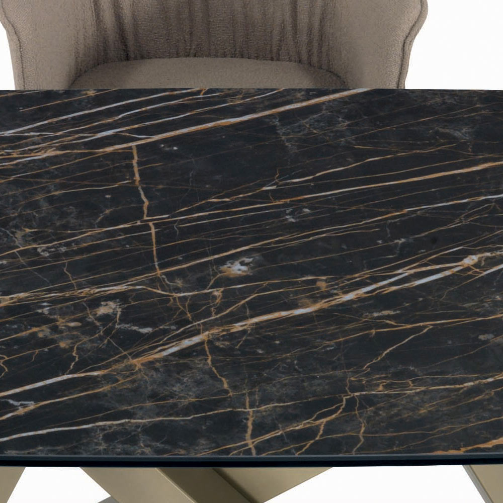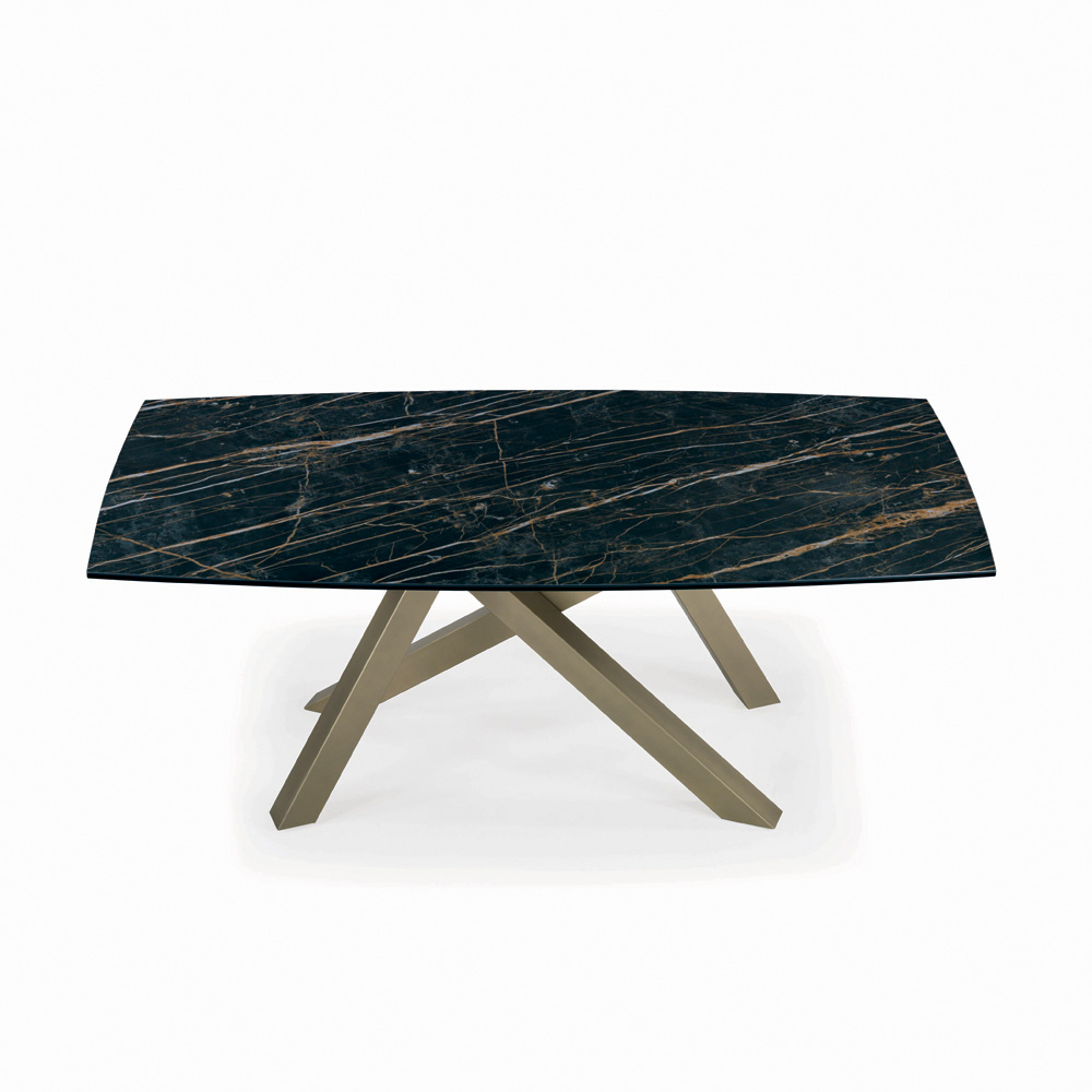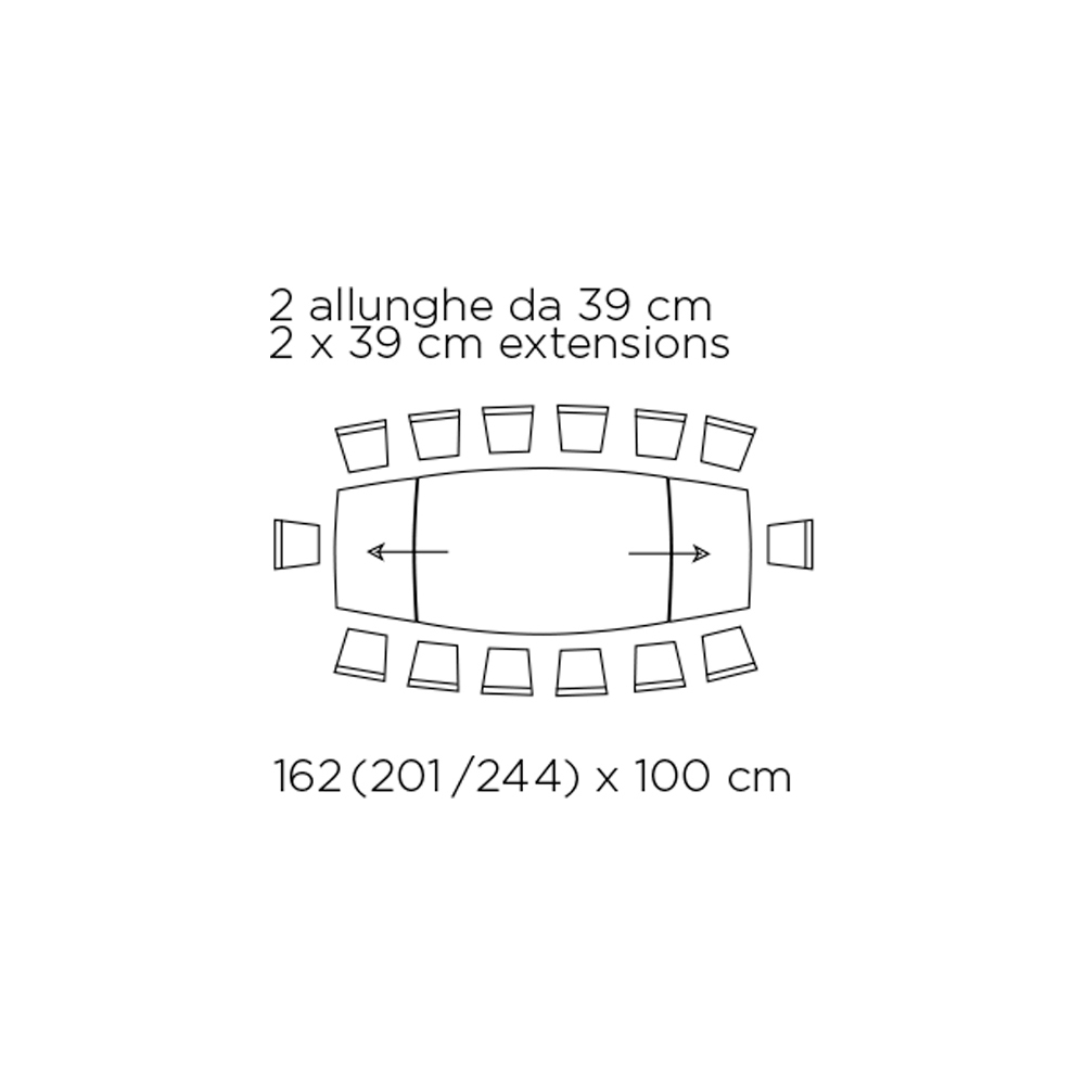 Masa de living extensibila in forma de butoi cu extensii integrate, blat din ceramica, margine