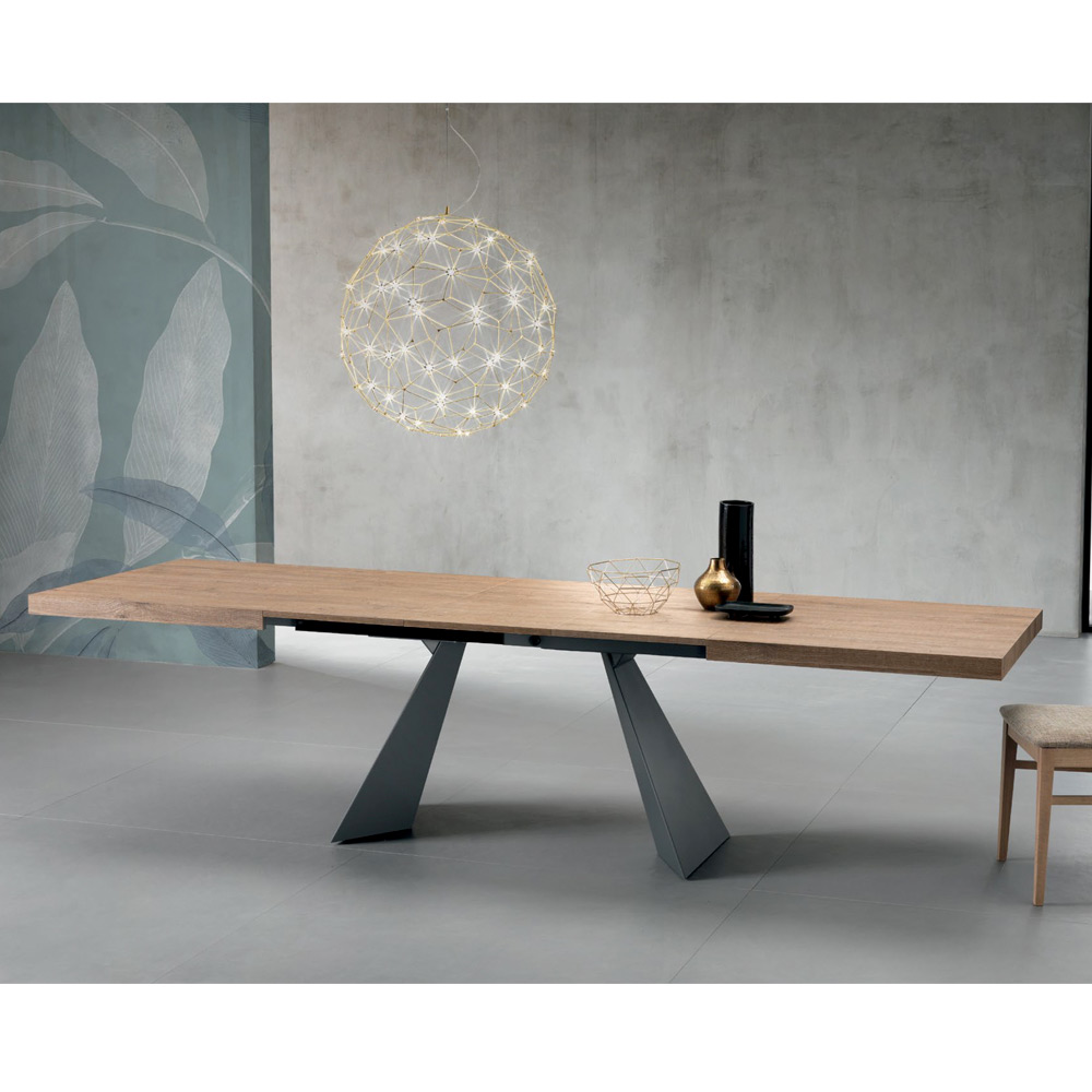 Această masă combină creativitatea arhitecturală și rafinamentul contemporan , transformând orice cameră într-un spațiu elegant . Blatul laminat cu finisaj din stejar exprimă toată frumusețea texturii naturale.
