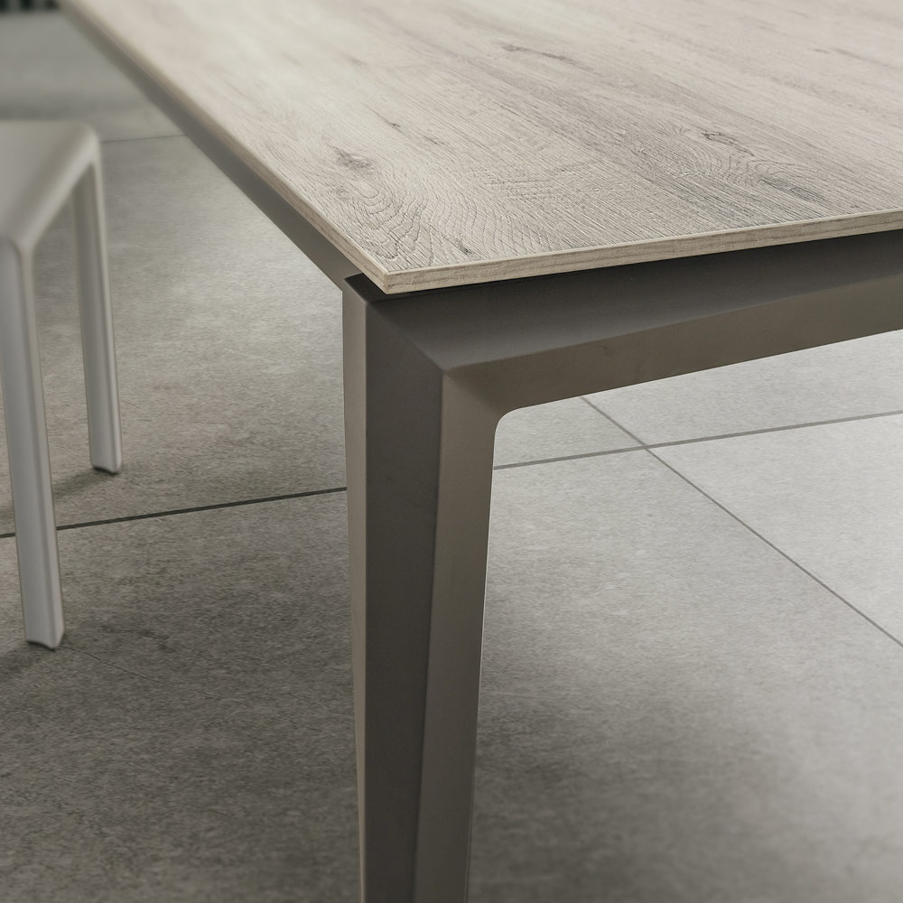 blatul extensibil care poate atinge o lungime de 240 cm, ceea ce îl face ideea perfectă pentru cei care iubesc să organizeze prânzuri și cine cu prietenii și au nevoie de o soluție atât funcțională, cât și modernă, care poate crea o armonie minunată cu mediul înconjurător. mobilier . Subliniind estetica sa splendida este blatul hpl, un