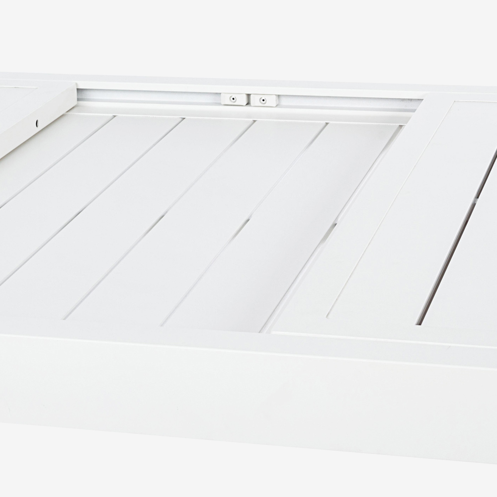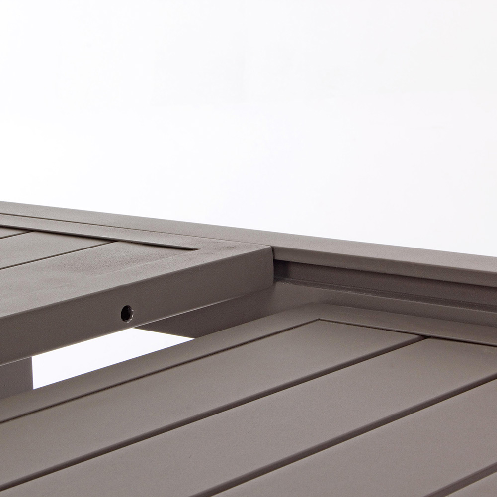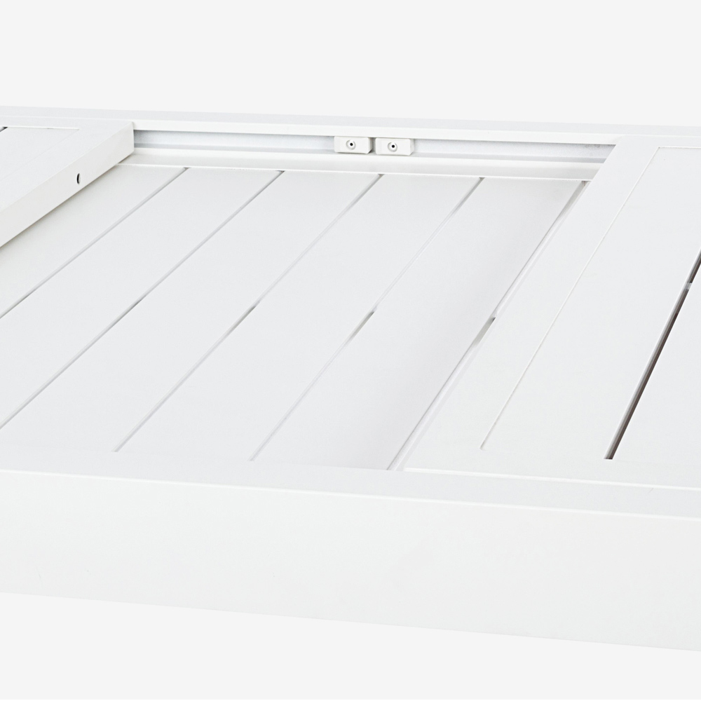 Masă de exterior extensibilă până la 240 cm din aluminiu alb sau gri porumbel.