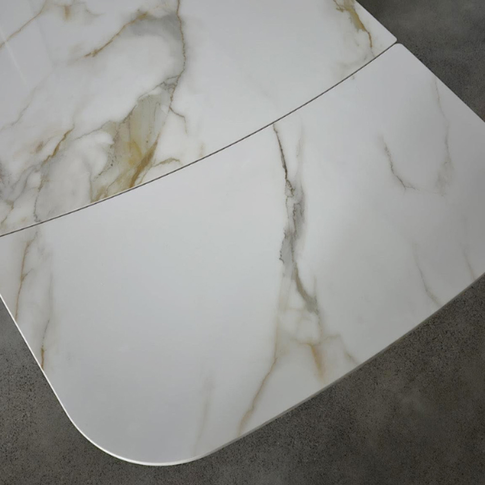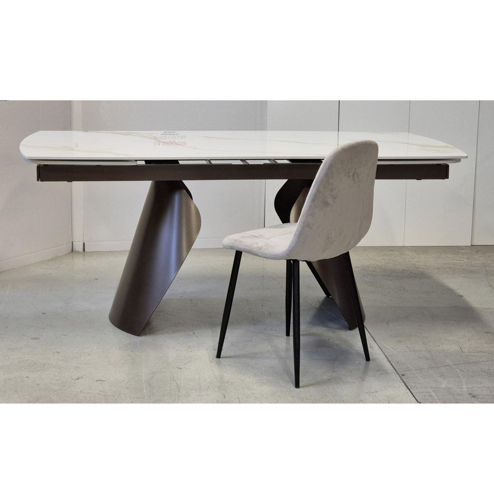 Această masă din gresie și metal este un exemplu perfect de design contemporan care combină stilul și funcționalitatea . Blatul elegant și luminos din gresie, cu efect de marmură, îmbunătățește spațiul cu venele sale aurii și finisajul lucios, care captează lumina cu un rafinament natural. Rama metalică vopsită , cu picioarele sale sculpturale asimetrice , conferă mesei dinamism și caracter, creând un contrast armonios între soliditatea bazei și ușurința vizuală a blatului.
