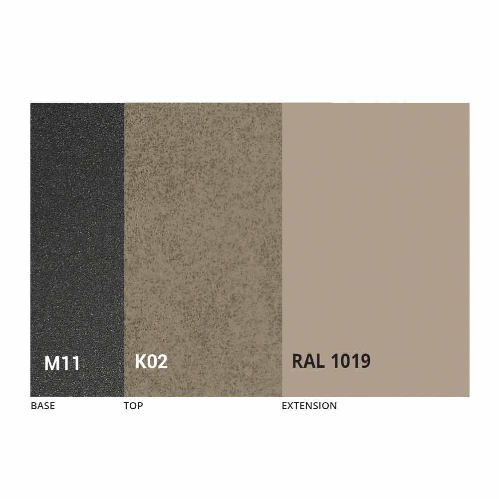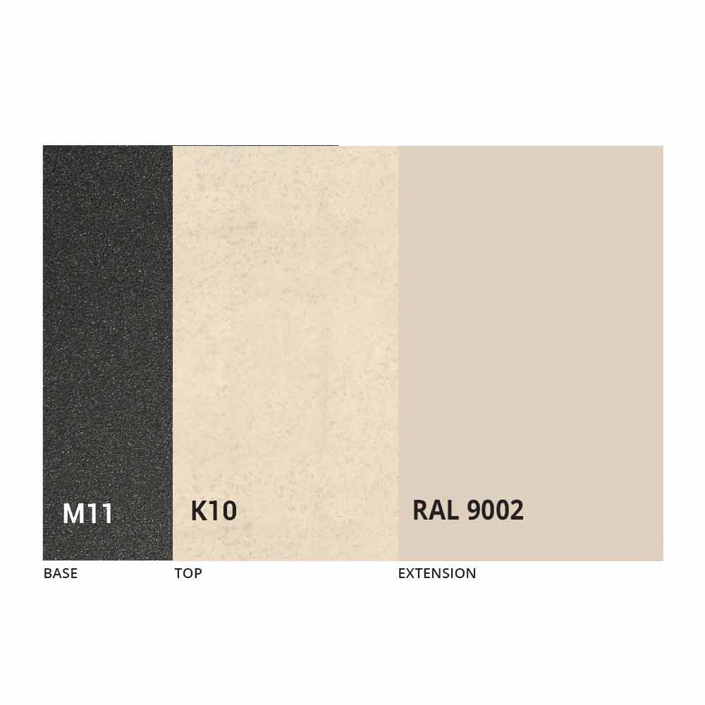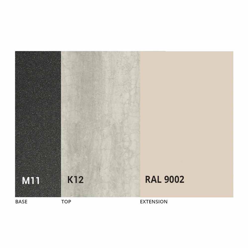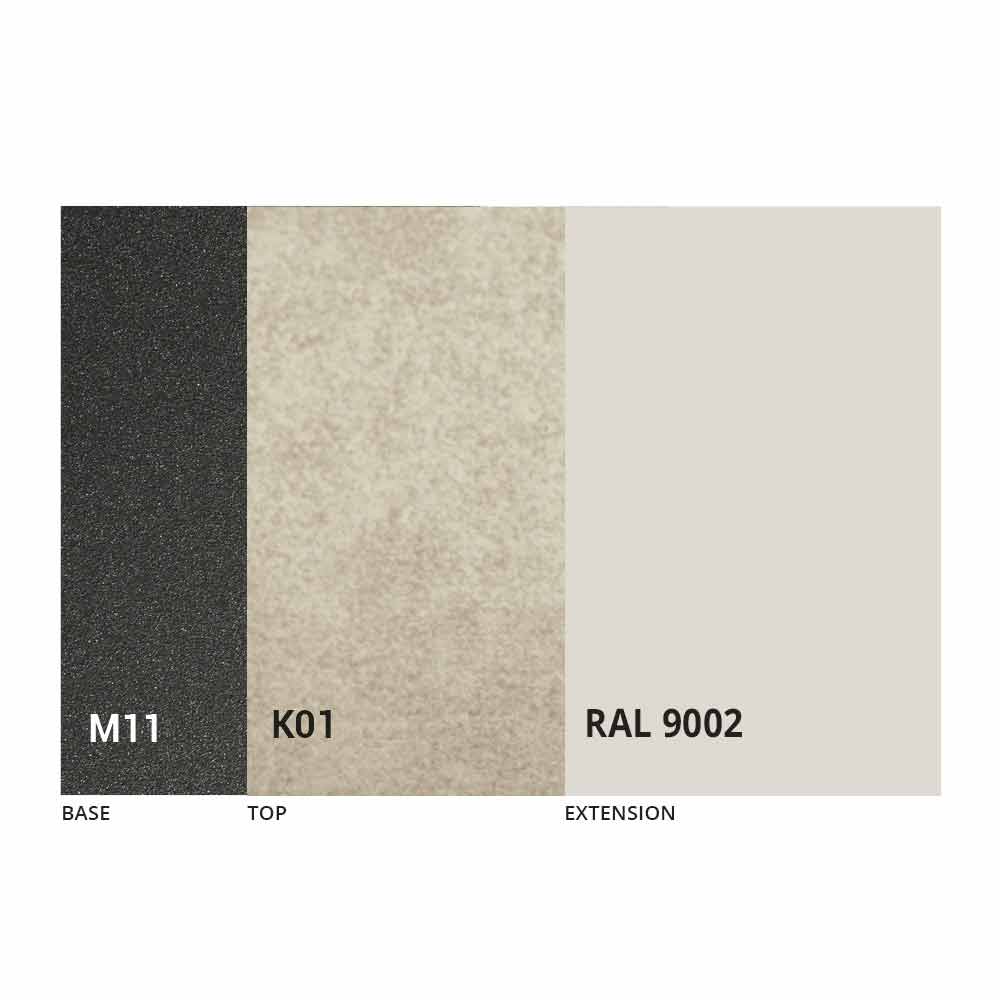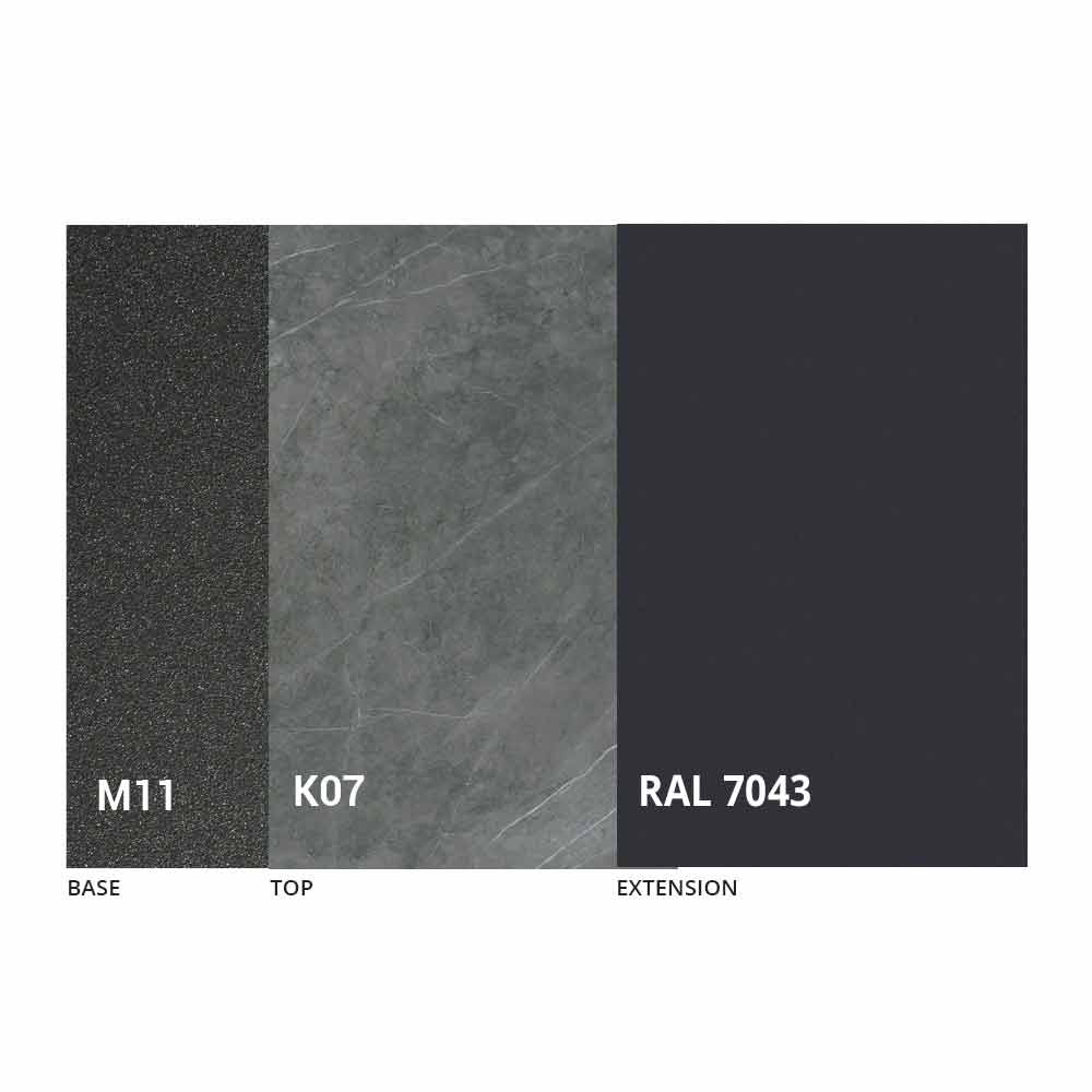 NB: la deschiderea mesei este necesar să ridicați extensia, să o poziționați la nivelul blatului și, abia apoi, să o deschideți. Blatul și baza mesei pot fi personalizate cu diferite materiale și finisaje mostre sau lacuire RAL. Pentru informații, contactați-ne folosind formularul corespunzător „ Solicitați informații” .