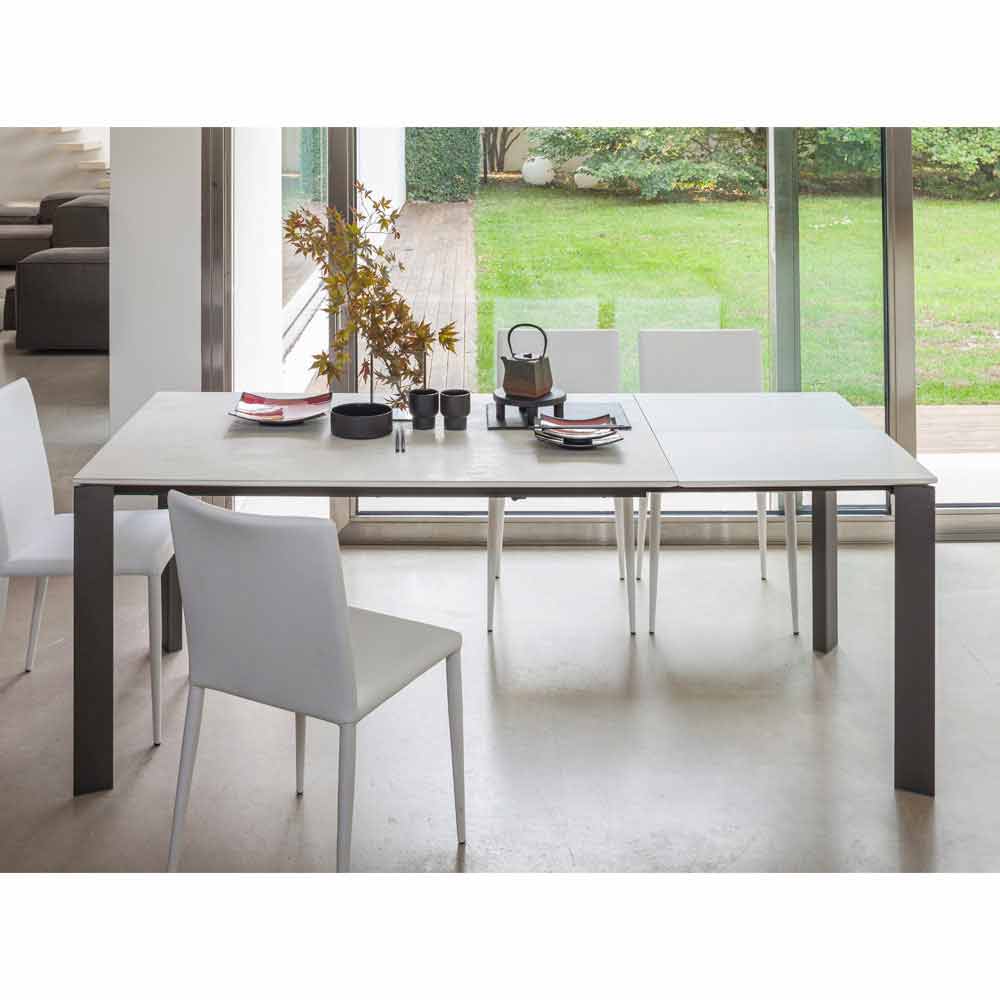 Masa de sufragerie extensibila din ceramica si baza metalica fabricata in Italia.