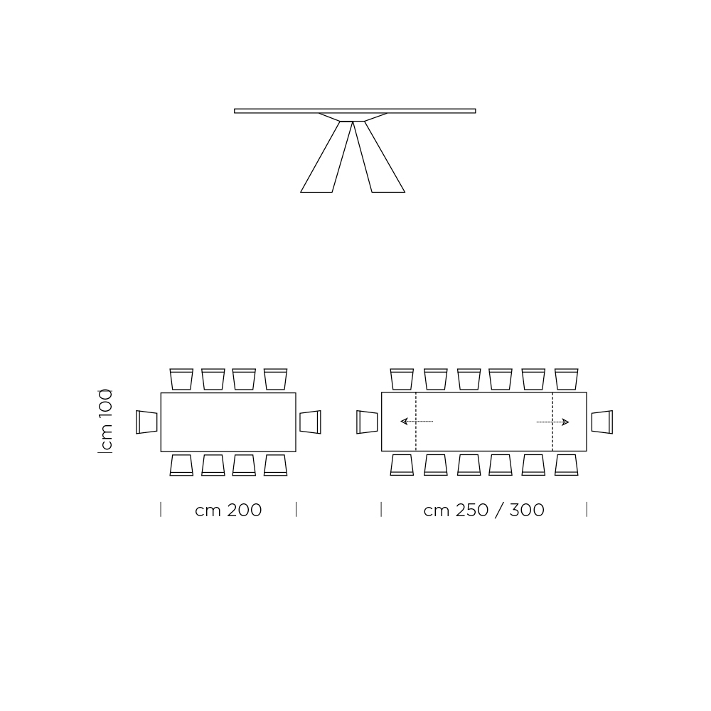 - L 200/300 x D 100 x H 75,3 cm 14 locuri (2 extensii de 50 cm).