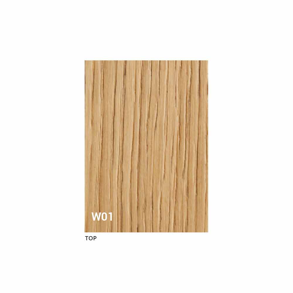 Blatul mesei poate fi personalizat cu diferite finisaje de probă. În plus, este disponibil și în versiunea cu margini drepte.