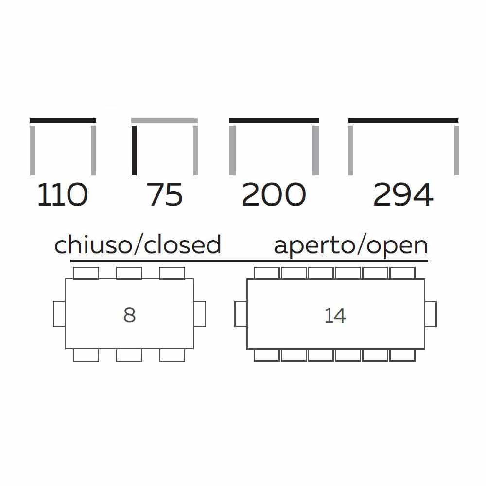 Dimensiune: L 200/294 x P 110 x H 75 cm