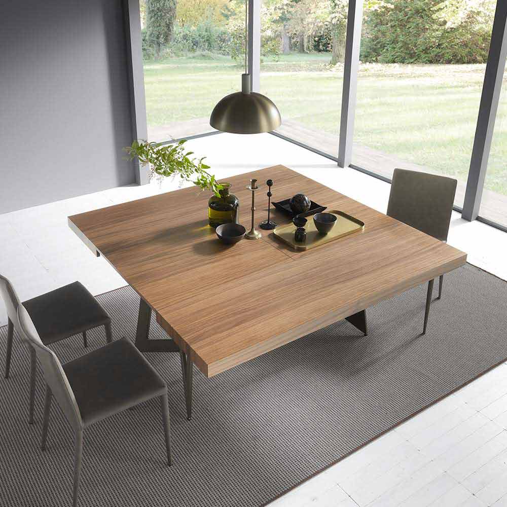 Caracteristica sa particulară constă în modul în care se extinde de la o masă dreptunghiulară la o masă pătrată pentru a găzdui de la 4 la 8 persoane.
