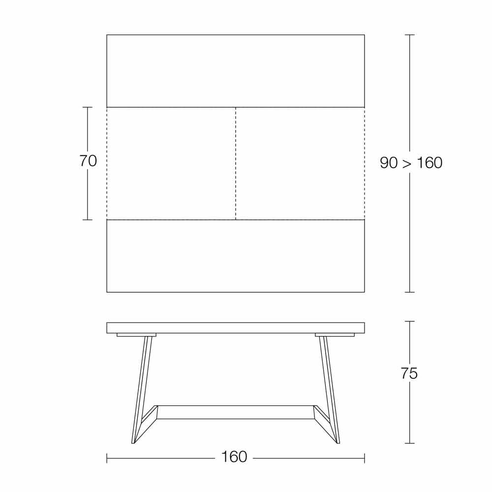 Masuri:- L 160 x D 90 (160) x H 75cm