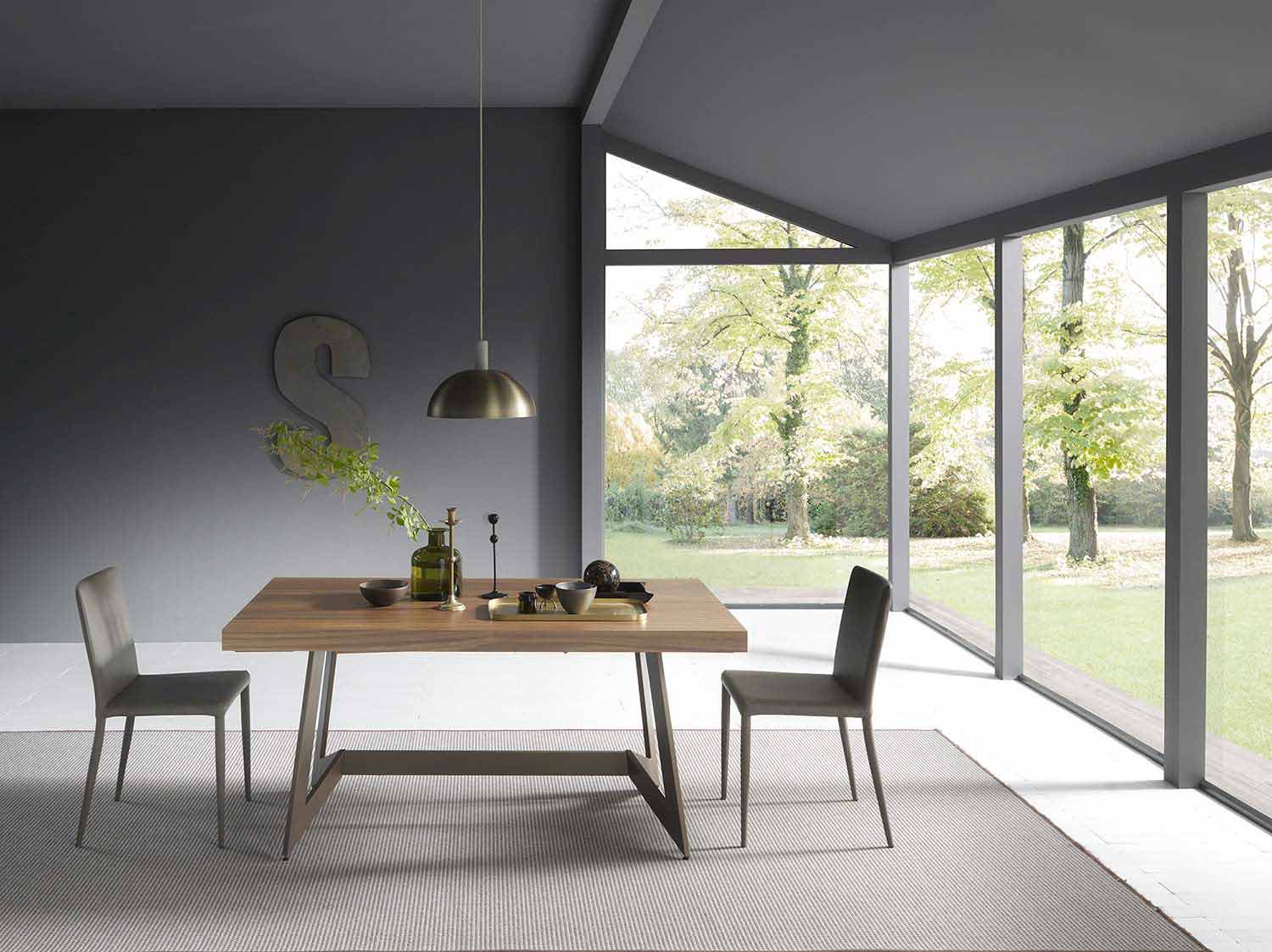 Masa de sufragerie extensibila cu blat din lemn si structura metalica Made in Italy.