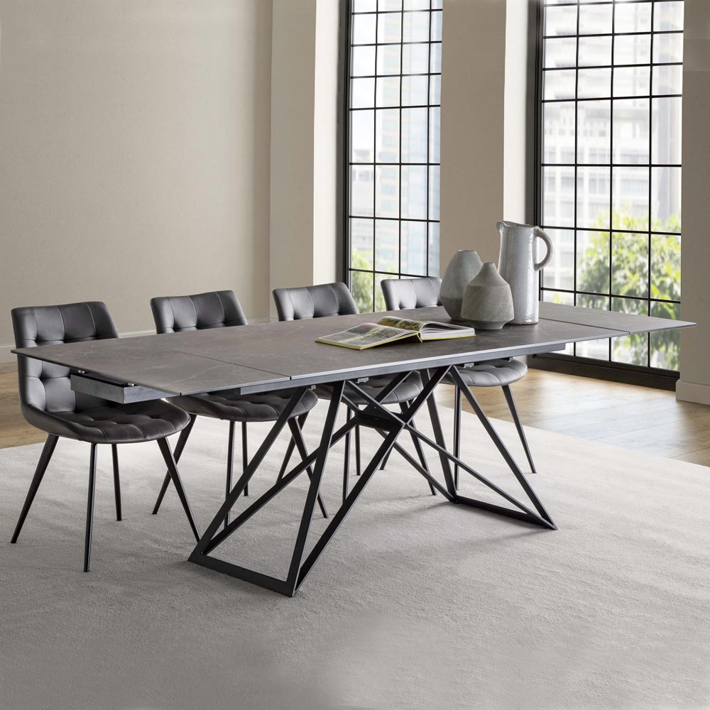 Masă extensibilă din sticlă ceramică și metal vopsit.