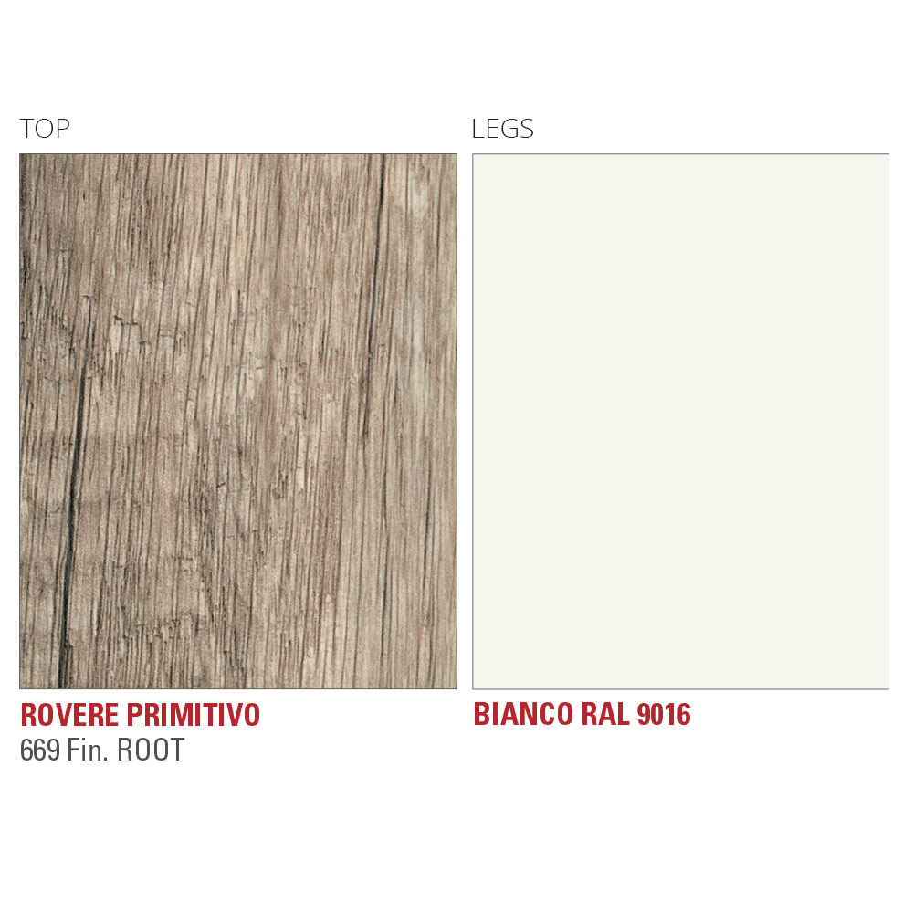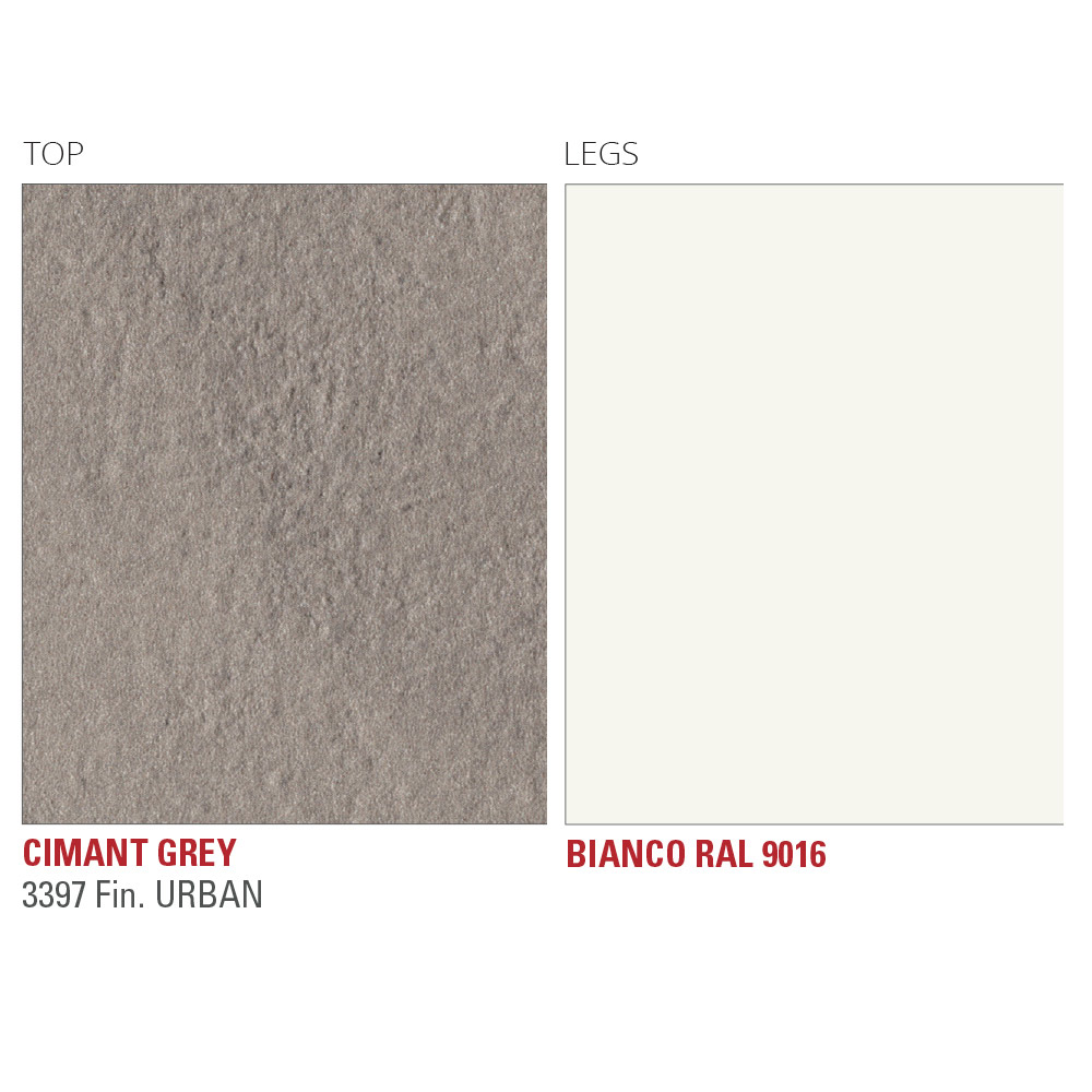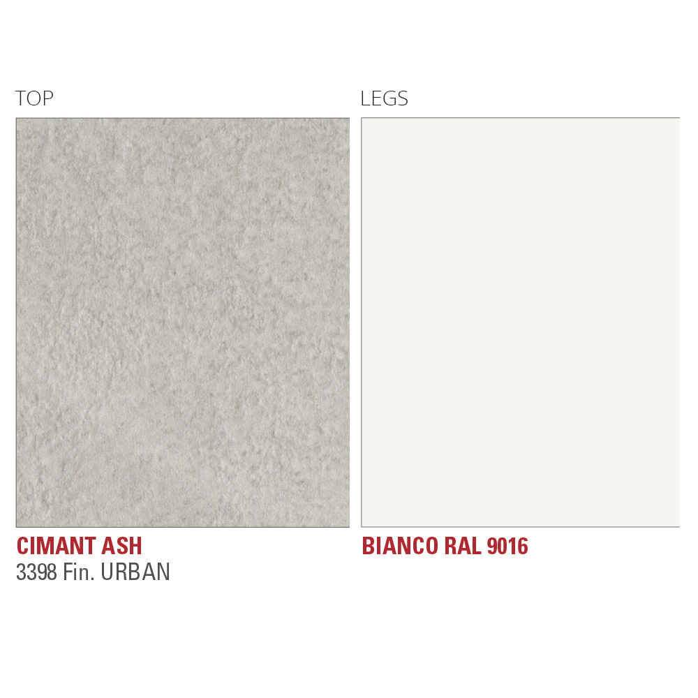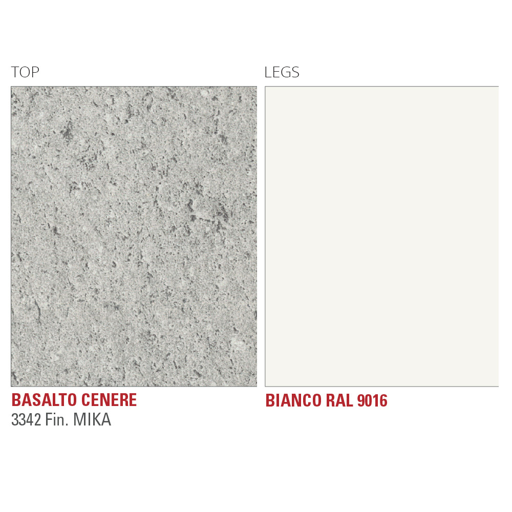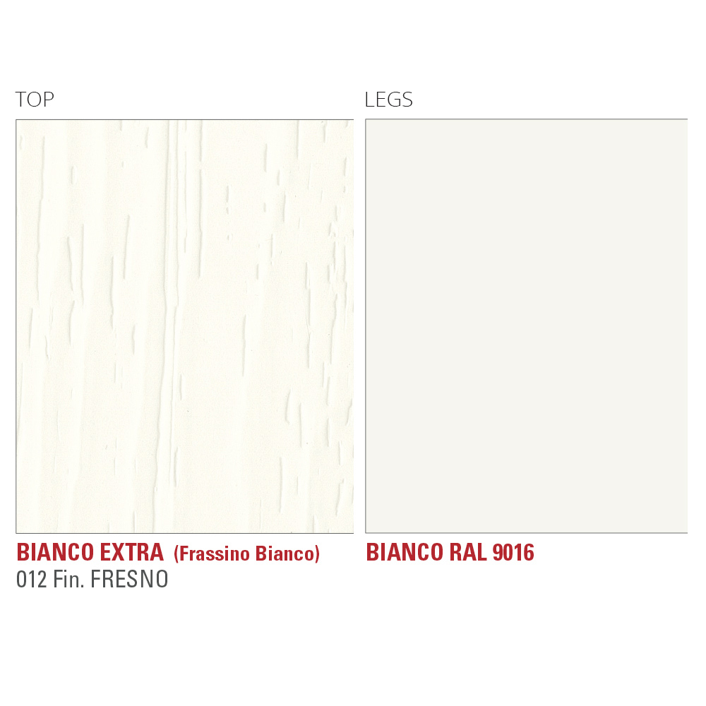 baza metalica lacuita cu pulberi epoxidice, finisaj alb. O masă elegantă și discretă, cu un blat pătrat mic, care, la nevoie, poate fi transformată pentru a găzdui până la 10 persoane, dovedindu-se a fi o soluție deosebit de potrivită pentru cei cărora le place să primească oaspeții acasă pentru prânzuri și cine minunate în companie. Această caracteristică reprezintă adevărata sa particularitate deoarece, datorită celor