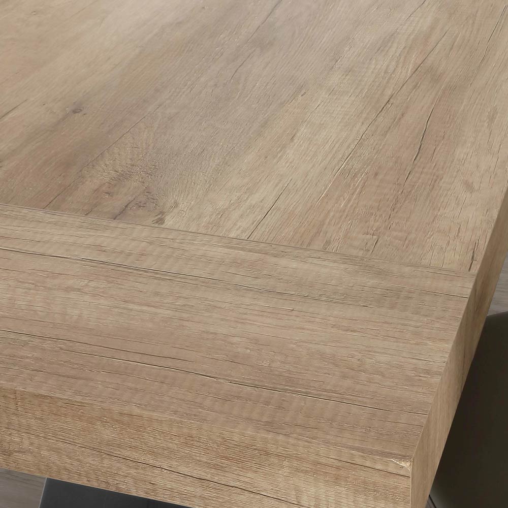 din lemn melaminat extensibil pana la maxim 260 cm datorita extensiilor asortate pozitionate sub blat. Tocmai pentru aceasta caracteristica este capabila sa gazduiasca un numar mai mare de invitati deschizand intr-un mod extrem de simplu si permitand o inchidere la fel de usoara odata cu masa. Prin urmare, designul său combină