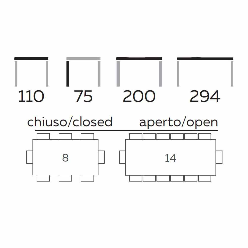 Dimensiune : L 200/294 x P 110 x H 75 cm