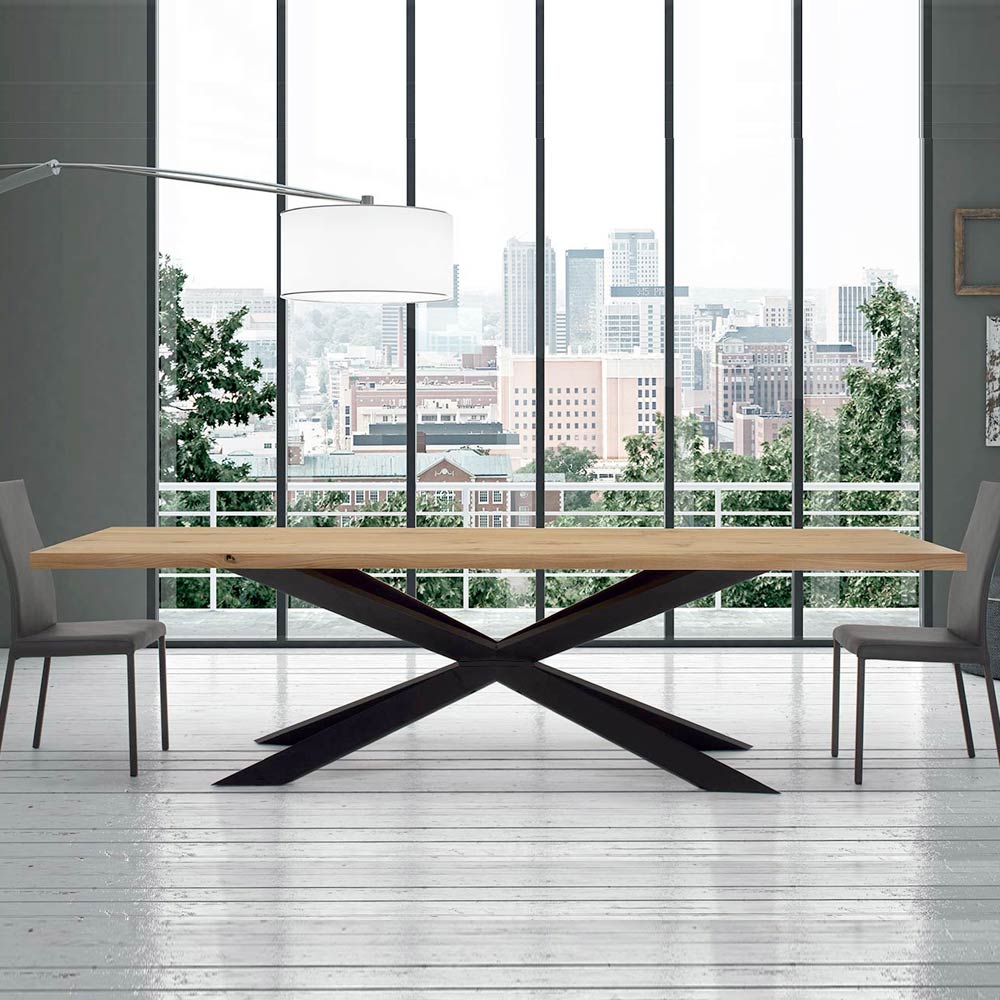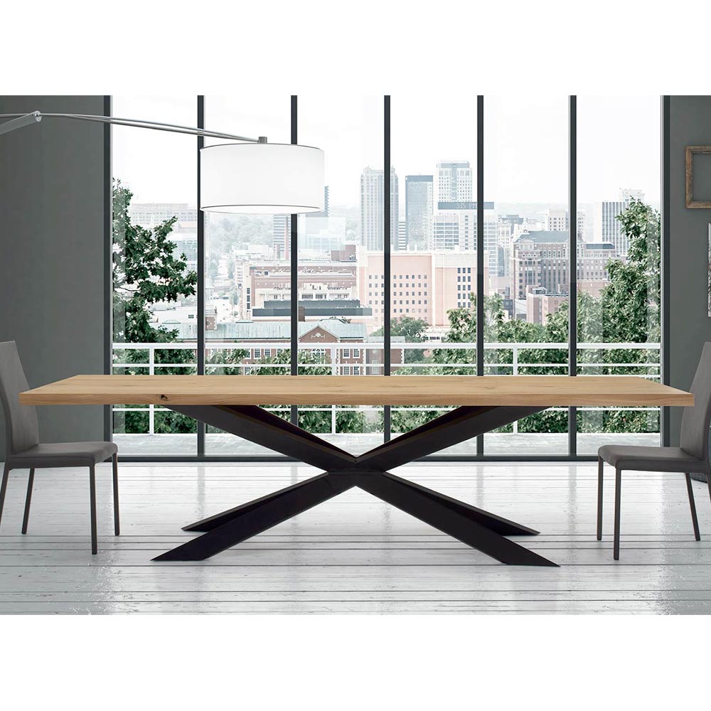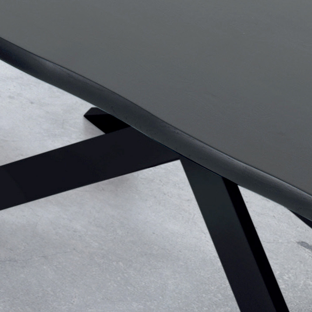 Masa de sufragerie extensibila pana la 300 cm din lemn furniruit si baza din otel negru, fabricata in Italia.