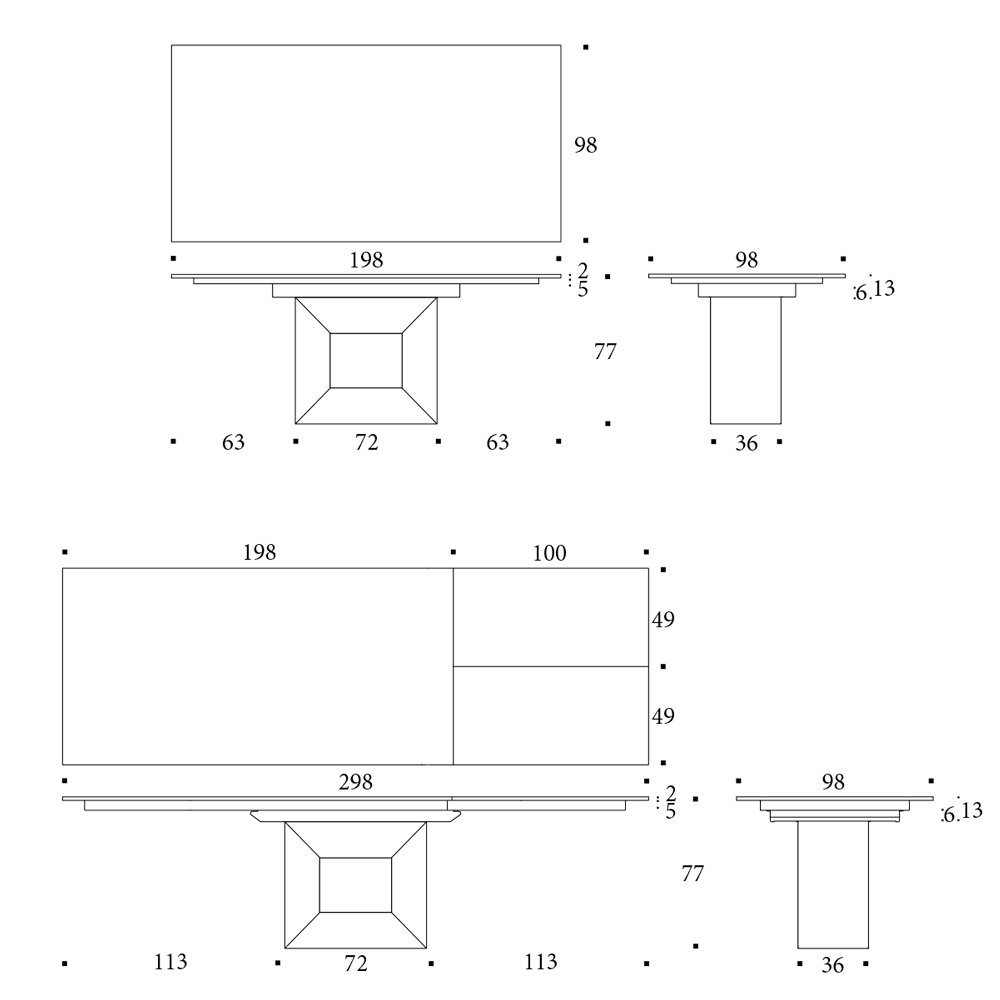 Notă: Sunt disponibile finisaje suplimentare pentru masa de bază. Este disponibilă și o masă fixă.