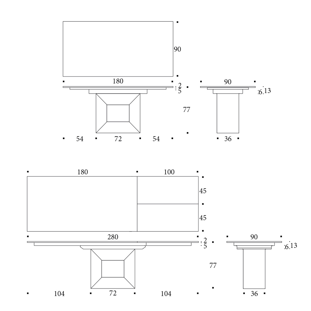Blatul este extensibil cu o ramă metalică, mecanism telescopic și deschidere sincronizată. Extensia internă se extinde ca o carte. Extensia se extinde cu o fibră continuă.