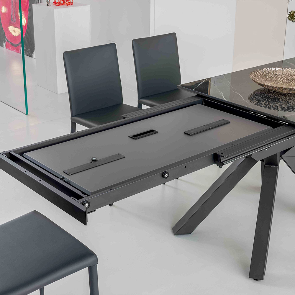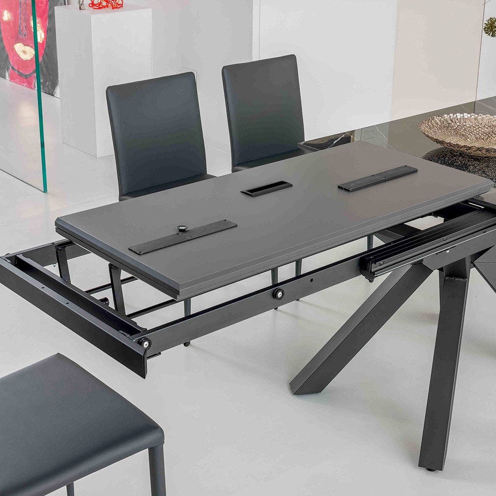 Adevărata frumusețe constă în flexibilitatea sa. Inchisa, este o masa sobra si eleganta ; deschis, se transforma intr-o suprafata generoasa de receptie . Ideal pentru cine cu prietenii, sesiuni colective de lucru sau ca spatiu versatil pentru familia ta, se adapteaza nevoilor momentului printr-o tranzitie fluida si fara efort.