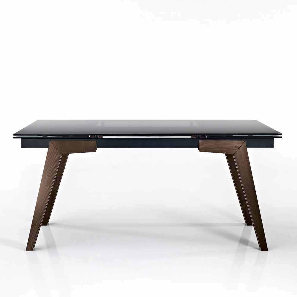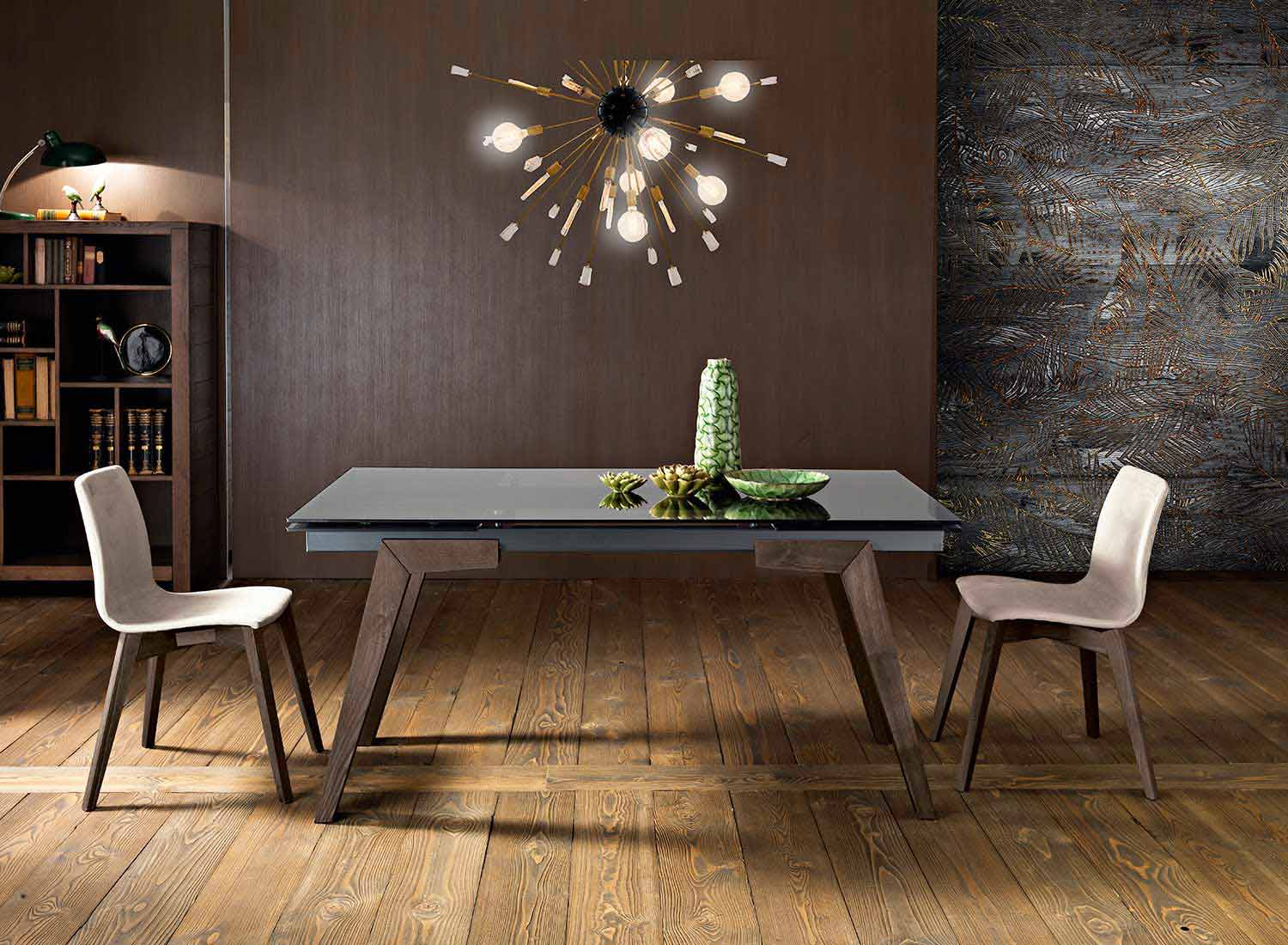 Dimitri este o masă extensibilă elegantă realizată în Italia cu o suprafață de sticlă securizată cu fum (grosime de 10 mm) și o suprafață din lemn masiv de stejar disponibilă în două finisaje diferite: