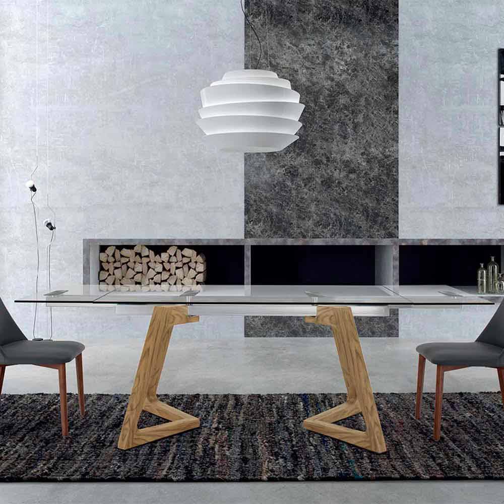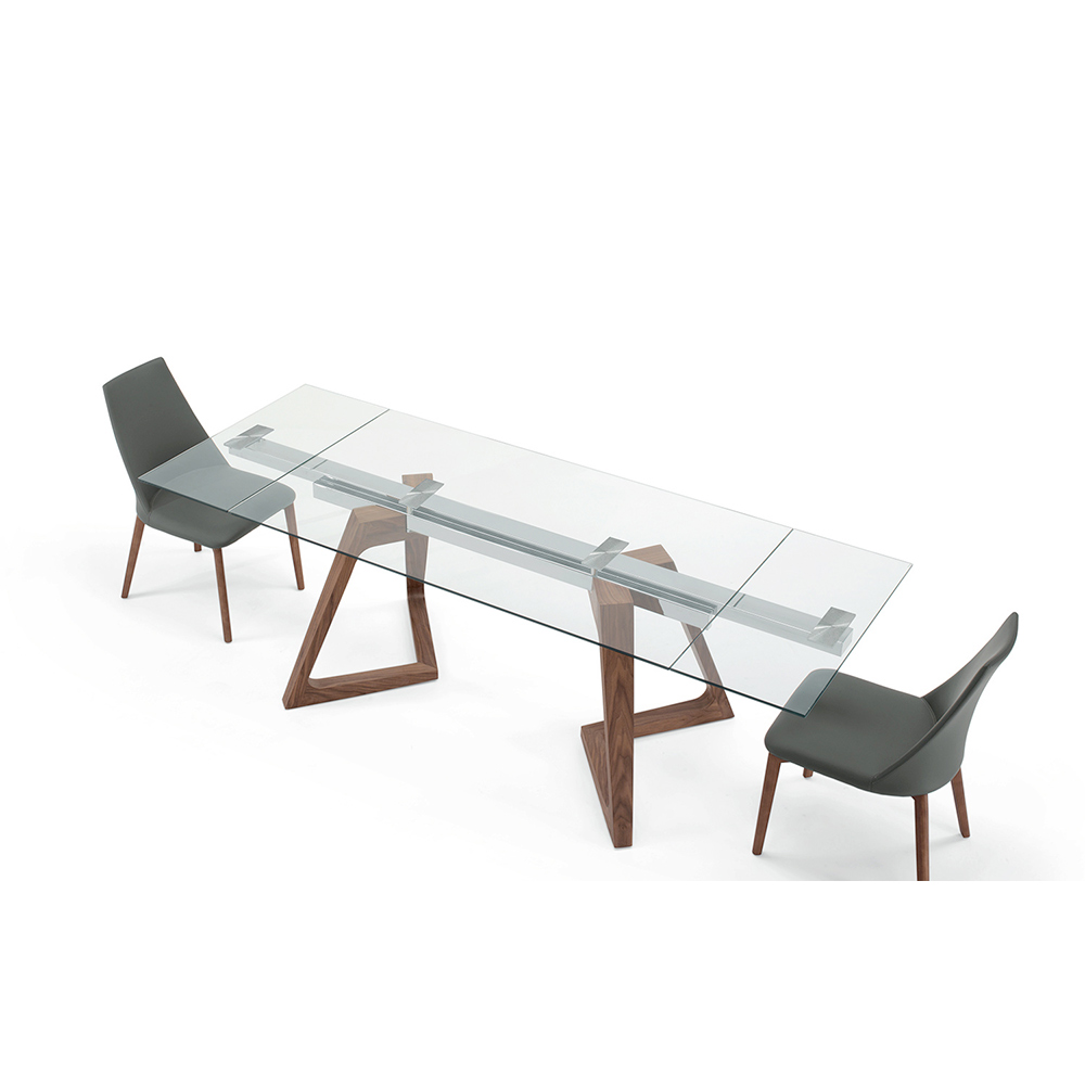 Masa extensibila din furnir de lemn cu design modern de pana la 280 cm cu blat din sticla transparenta.