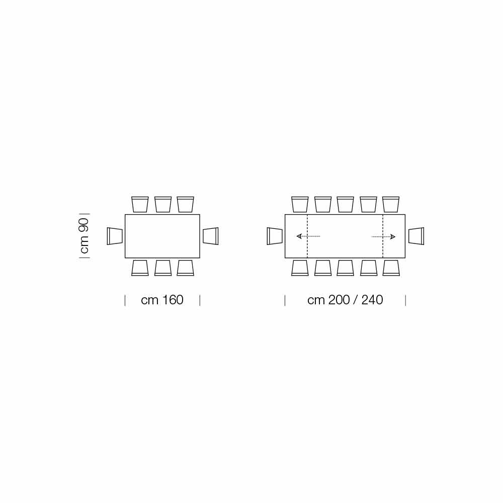 Măsuri- L 160 (240) x D 90 x H 77 cm (8/12 locuri);