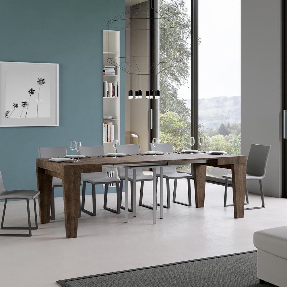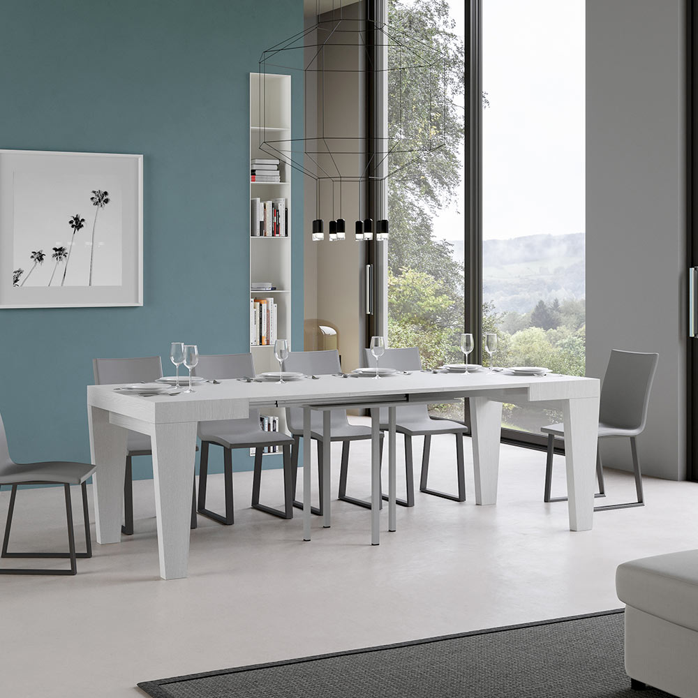 Masă de luat masa extensibilă realizată dinmicroparticule de lemn, în întregime Făcută în Italia. Extensiile pot fi inserate progresiv, permițând configurații intermediare de lungime, astfel încât să puteți alege dacă să o utilizați cu una, două sau trei extensii în funcție de nevoile dvs. de spațiu. Atunci când nu sunt utilizate, extensiile trebuie depozitate în altă parte și nu își găsesc locul în structura mesei.