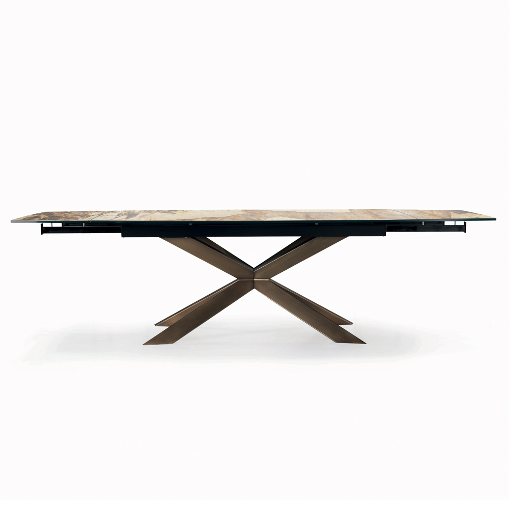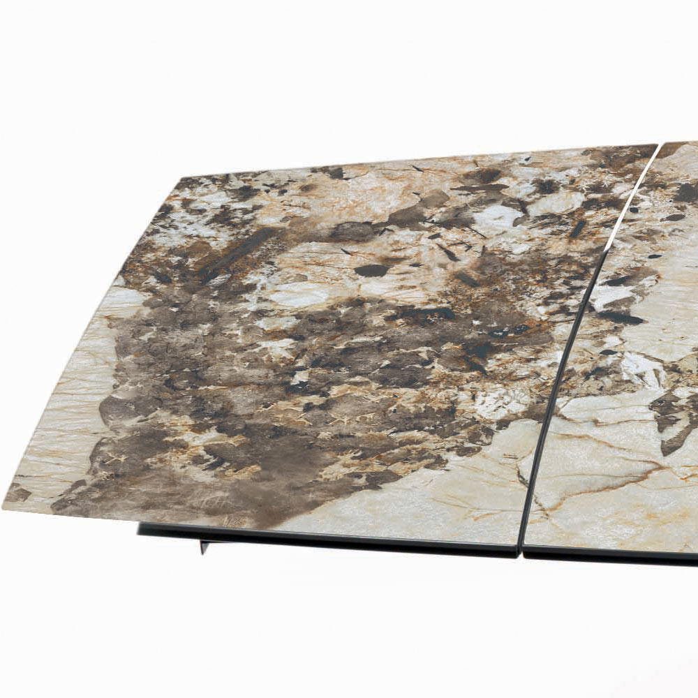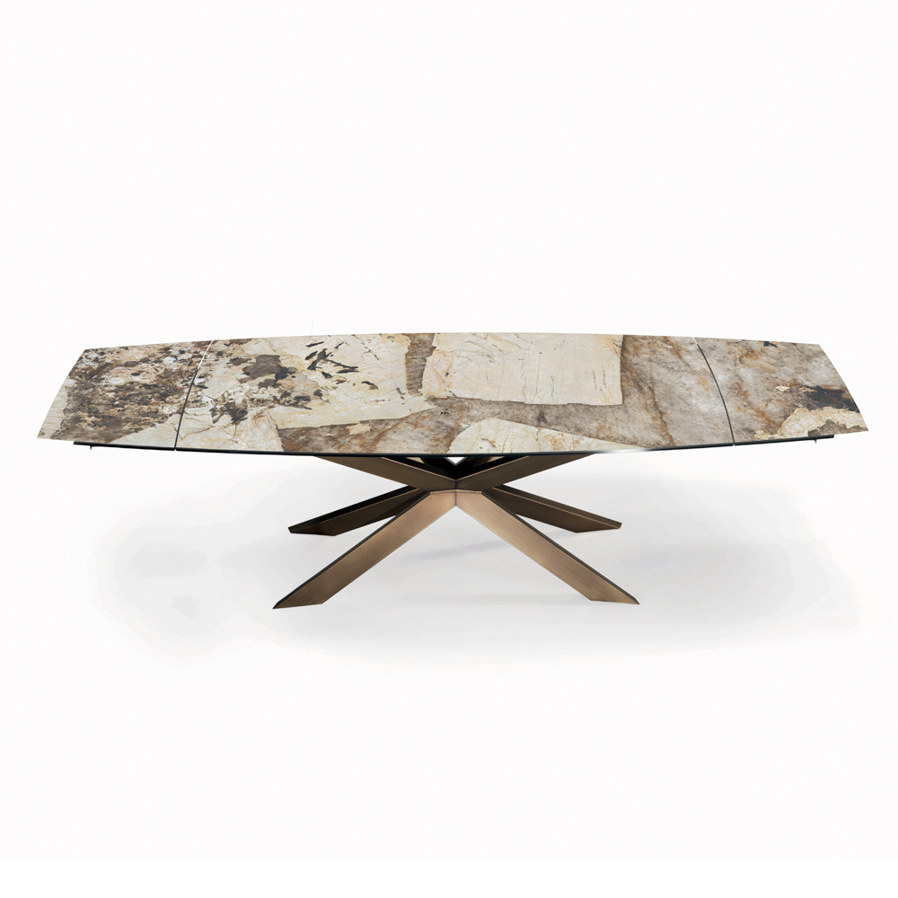 Masă de living extensibilă în formă de butoi cu extensii integrate, blat din ceramică cu finisaj deset soul lustruit , margine