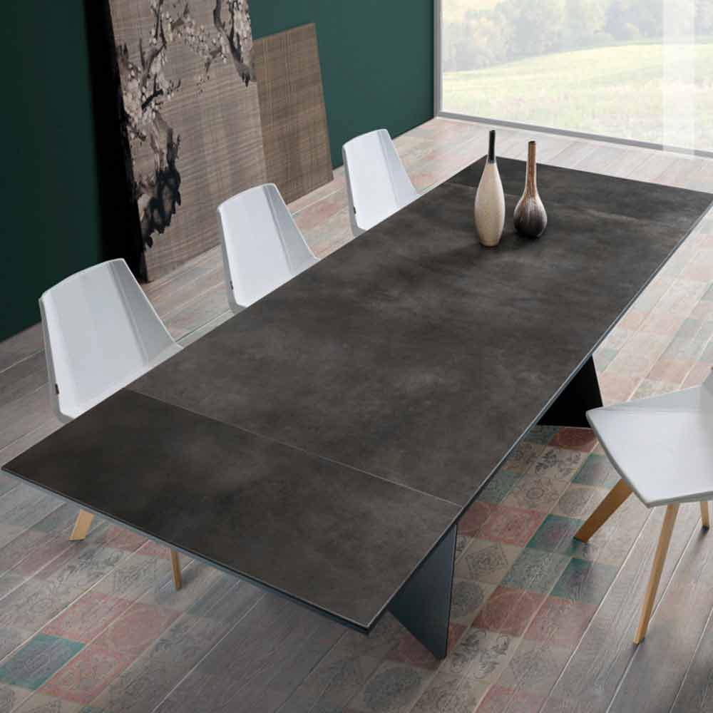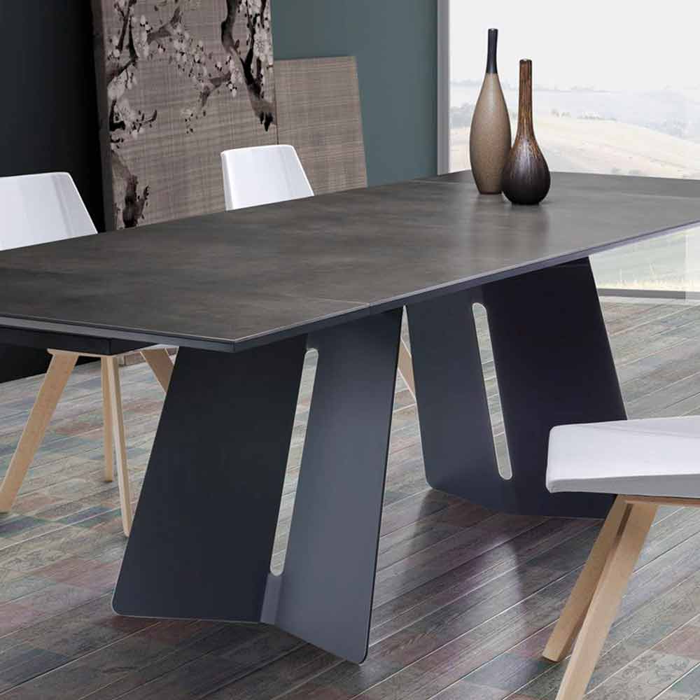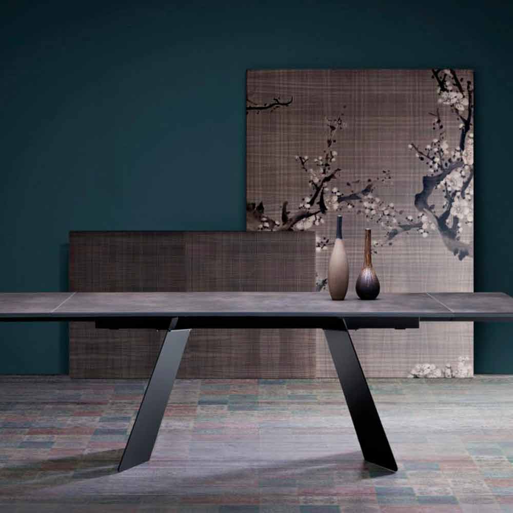 Masă extensibilă de design modern cu vârf din sticlă, Erve