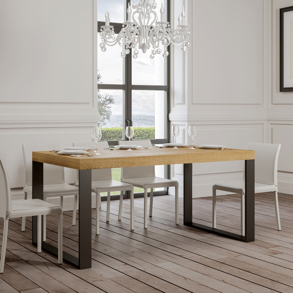 Această masă se remarcă prin versatilitate, datorită mecanismului inteligent care îi permite să fie extinsă cu ușurință, transformând-o dintr-o masă confortabilă într-o masă generoasă, capabilă să găzduiască mai mulți oaspeți. È ideală pentru cei cărora le place să ntâmpine prietenii și familia sau pentru cei care au nevoie de adaptabilitate în medii multifuncționale.
