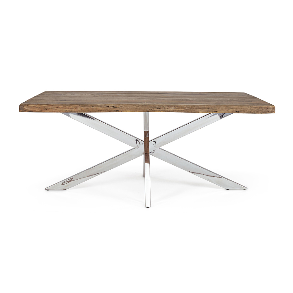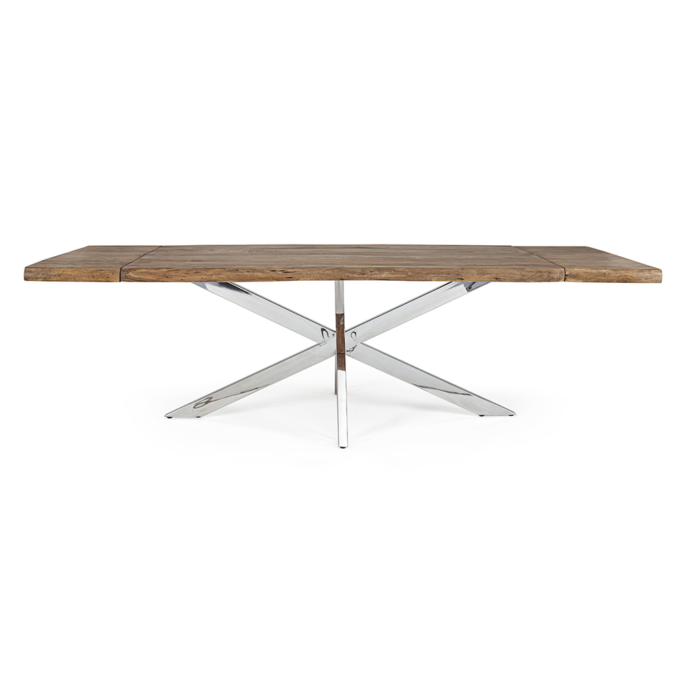Masa de sufragerie extensibila din lemn masiv de acacia si baza din otel, 10 persoane.