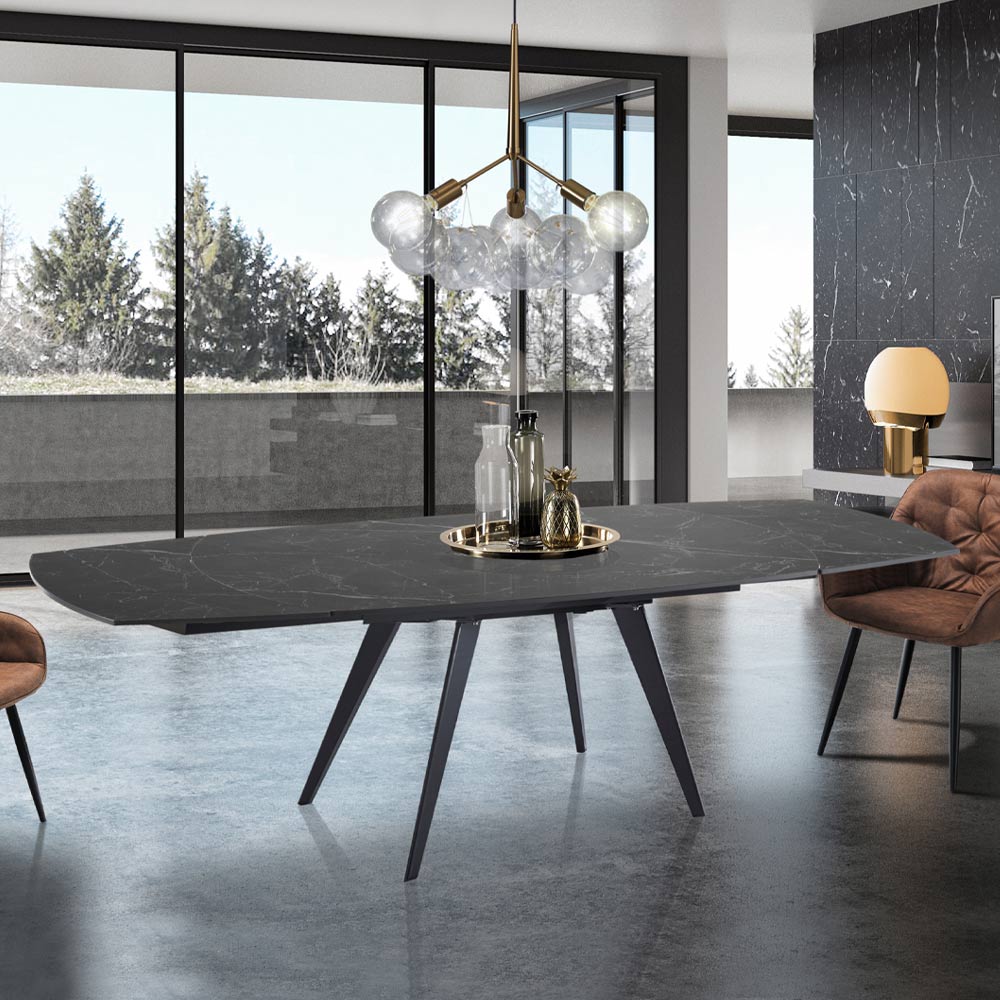 - blat ceramic cu finisaj marmura neagra mata, baza neagra mata