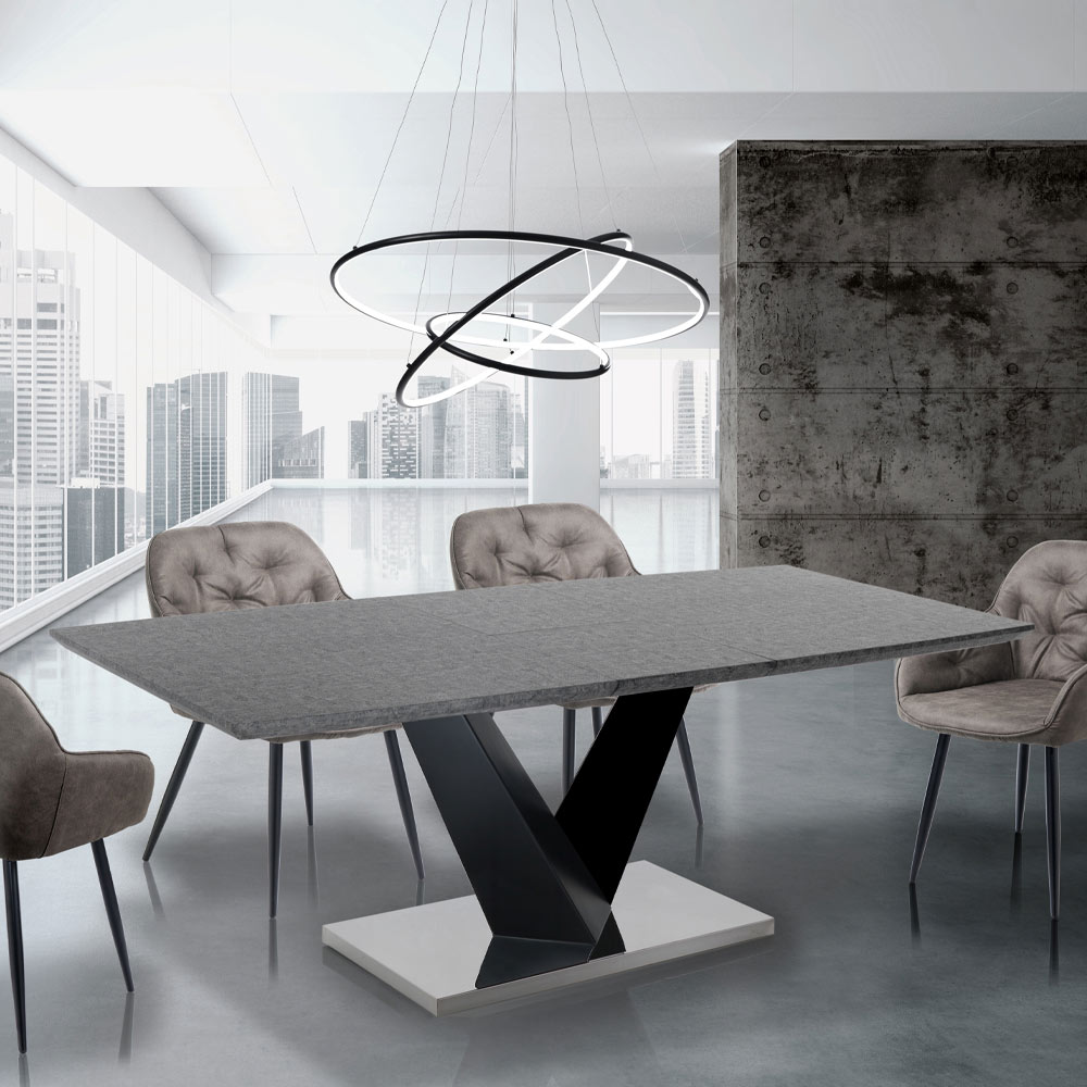 MDF lacuit negru mat, prelungire interioara din MDF acoperit cu melaminat, finisaj ciment, grosime 4 cm, si baza in intregime din