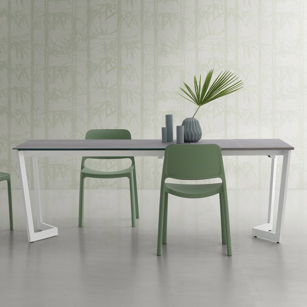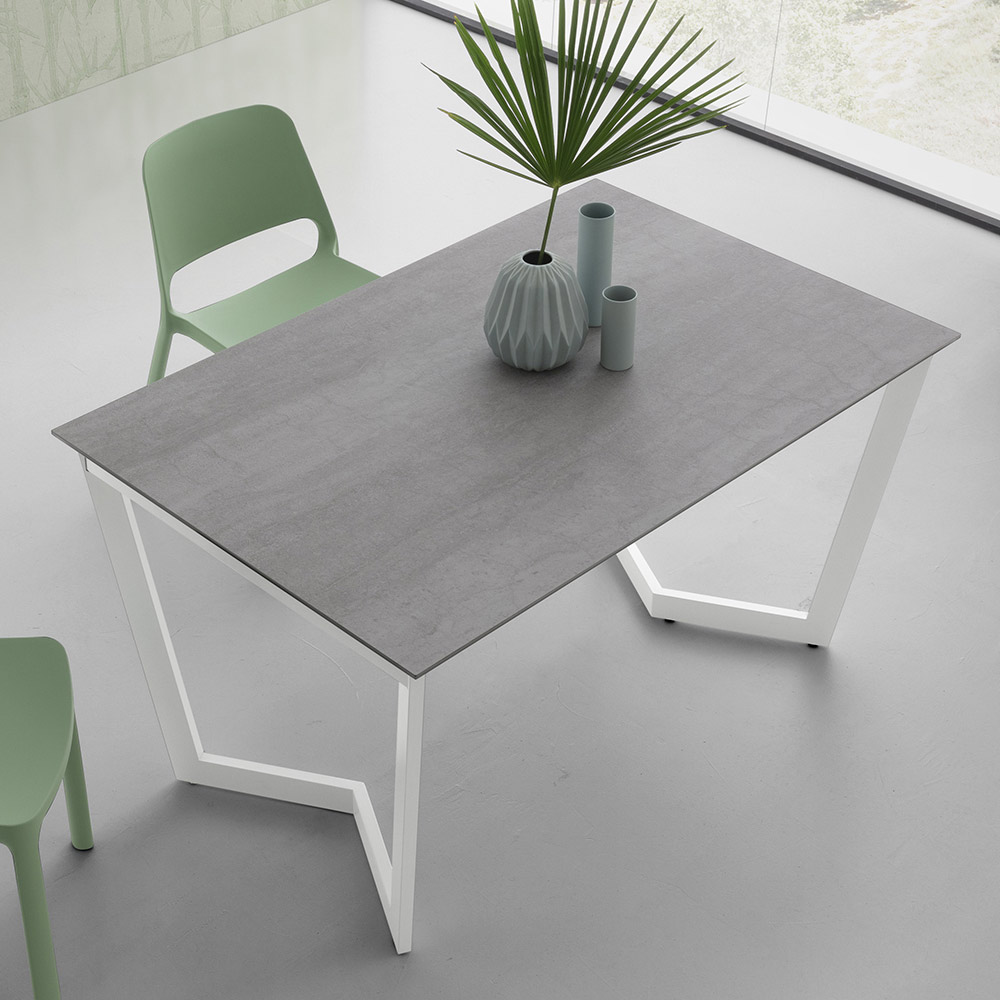 Masa de bucatarie extensibila din ceramica laminata cu baza metalica Made in Italy.