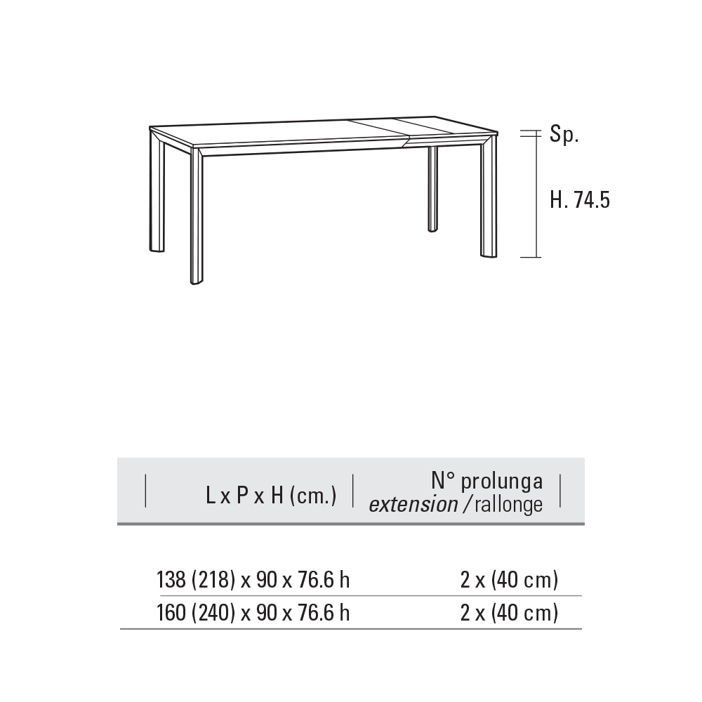 Dimensiuni disponibile:- L 138/218 x A 90 x H 76,5 cm;