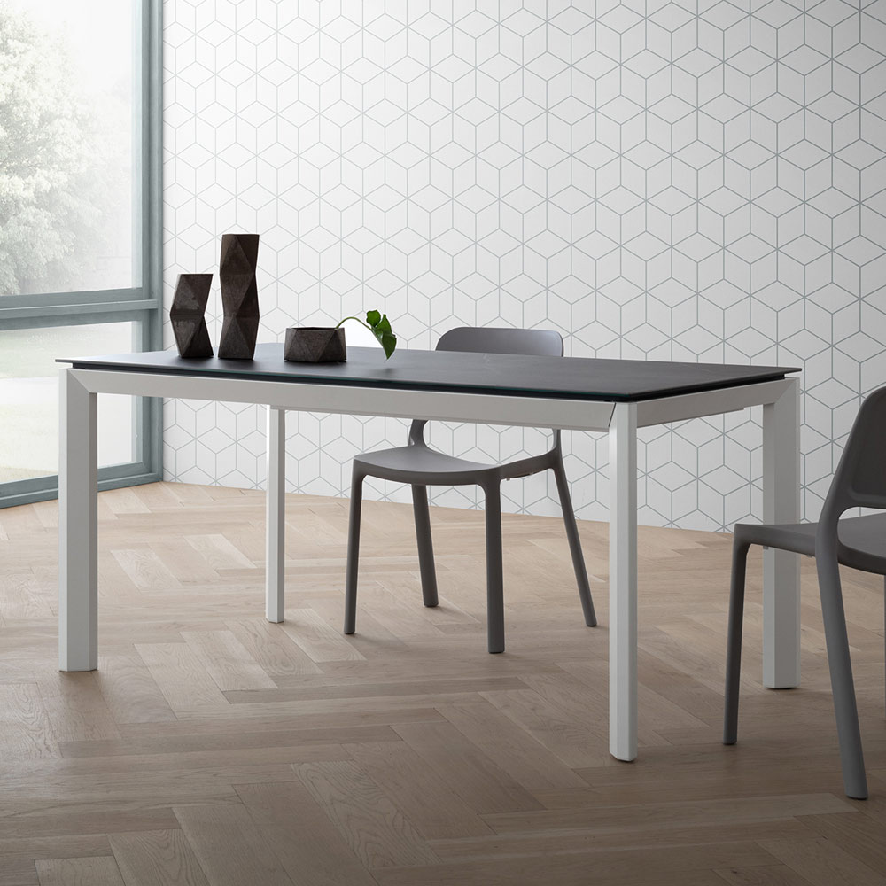 Masa de sufragerie extensibila pana la 240 cm din ceramica laminata si aluminiu Made in Italy.