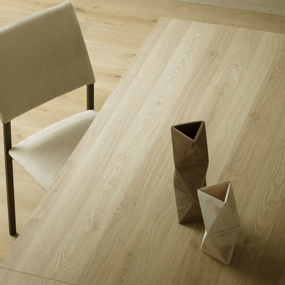 NB : baza și blatul mesei sunt disponibile într-o gamă largă de finisaje diferite. Continuitatea bobului între vârf și prelungire nu este garantată
