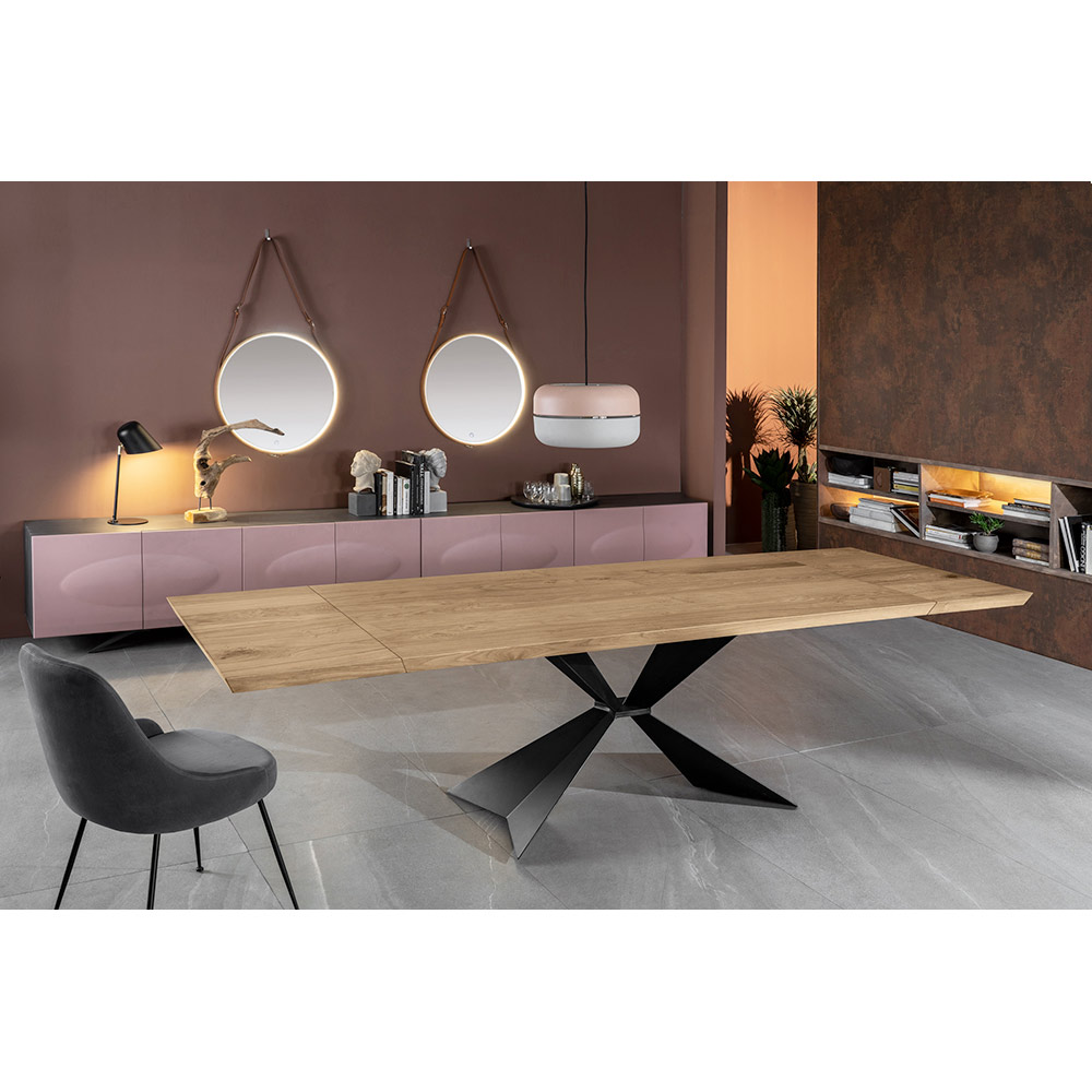 Aceasta masa, datorita formei picioarelor sale, confera incaperii o nota moderna si eleganta care se potriveste perfect cu referinta clasica a lemnului, satisfacand astfel diferitele nevoi de stil si design. Este o masă care devine protagonistul zonei de zi, fie ea bucătărie sau sufragerie, oferind clientului momente unice și de neuitat de convivialitate.