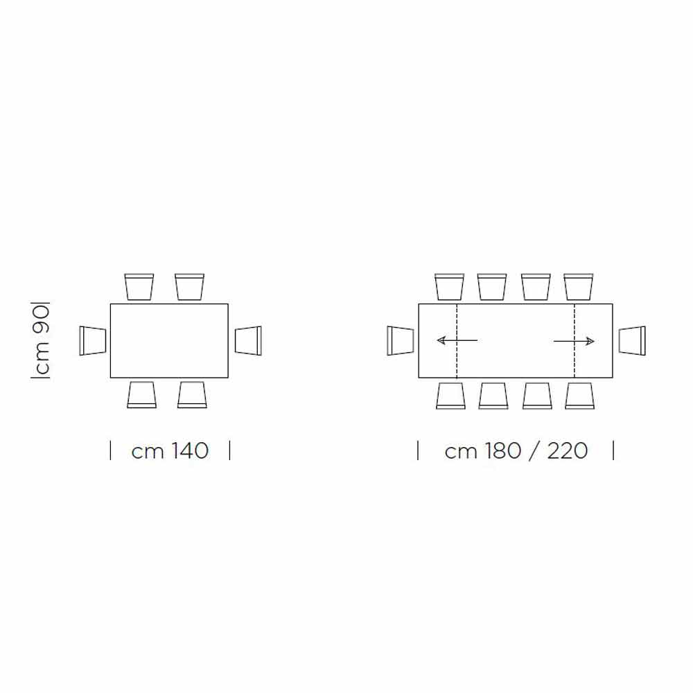 - L 140/220 x D 90 x H 75,5 10 locuri (2 extensii 40 cm);