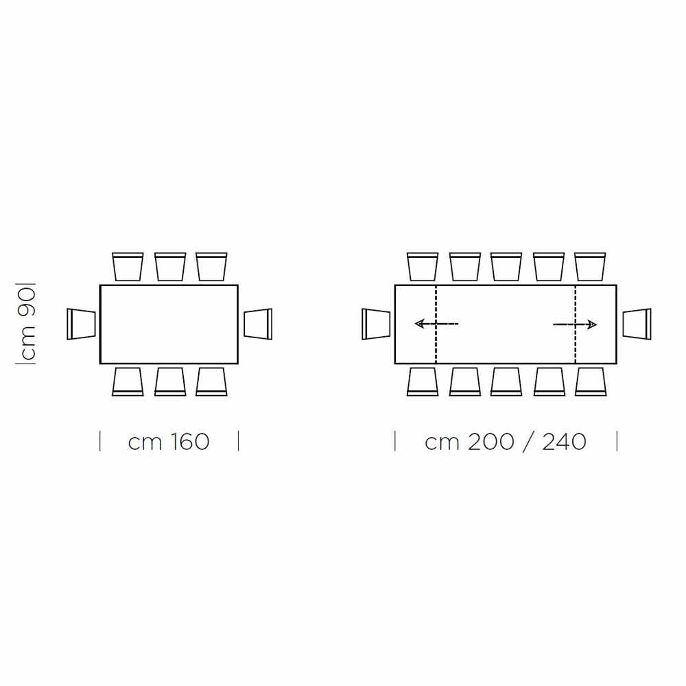 - L 160/240 x D 90 x H 75,5 12 locuri (2 extensii de 40 cm)
