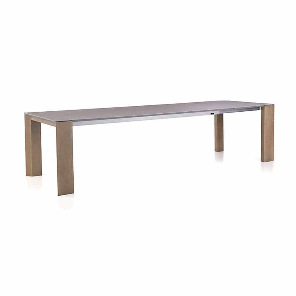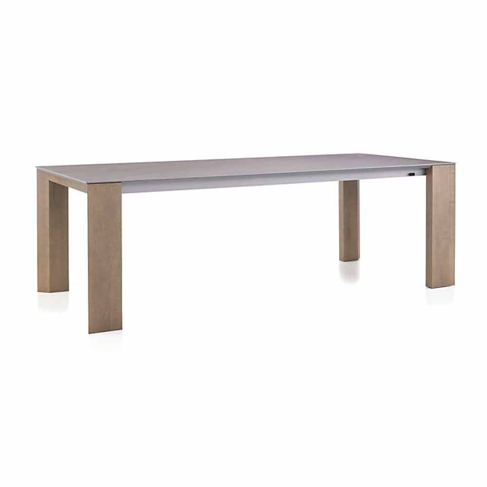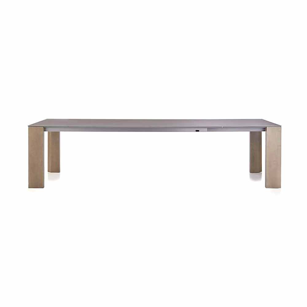 Ideea acestui tip de colecție de mese, cu măsuri cu adevărat importante până la 300 cm lungime, este de a oferi un serviciu de extensibilitate ușor accesibil. Eleganța este prezentă și într-o poziție alungită. Această simplitate în funcția de extensibilitate este posibilă prin utilizarea unui cadru din aluminiu cu ghidaje integrate, combinând materiale tradiționale nobile precum lemnul și ceramica printr-un design contemporan care durează în timp.
