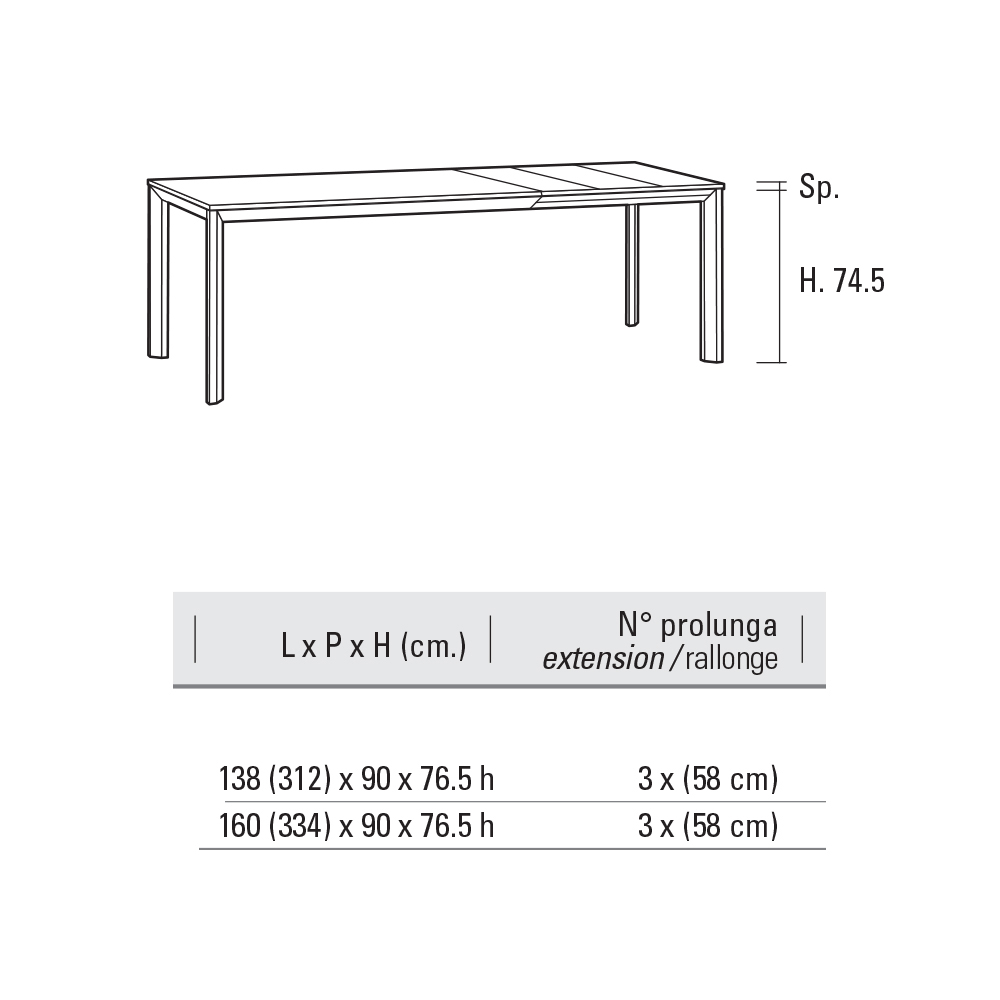 realizate din acelasi material ca si blatul, permit acestui element de mobilier sa se extinda pana la o lungime maxima de 334 cm, creand astfel o