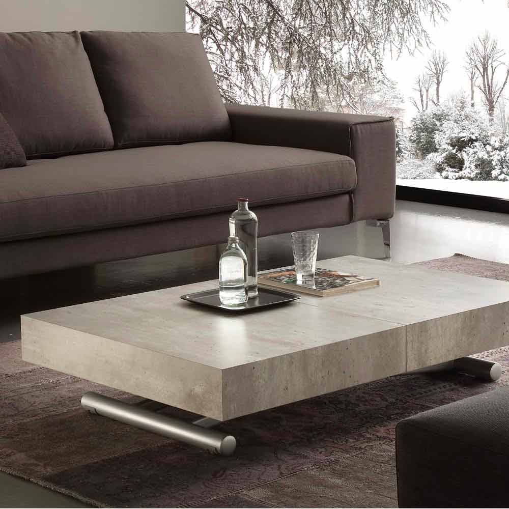 Masă extensibilă cu înălțime reglabilă prin intermediul unei pompe de gaz. Poate fi folosit ca masă sau ca masă laterală. Cadru metalic și pardoseală din melamină de înaltă calitate, disponibil în două variante diferite: în finisarea betonului trăită în epocă sau variantă.