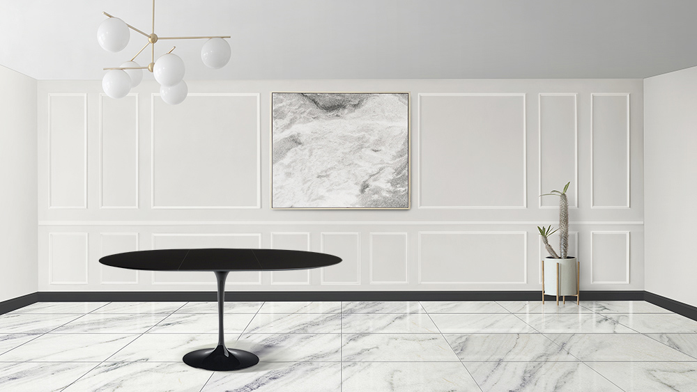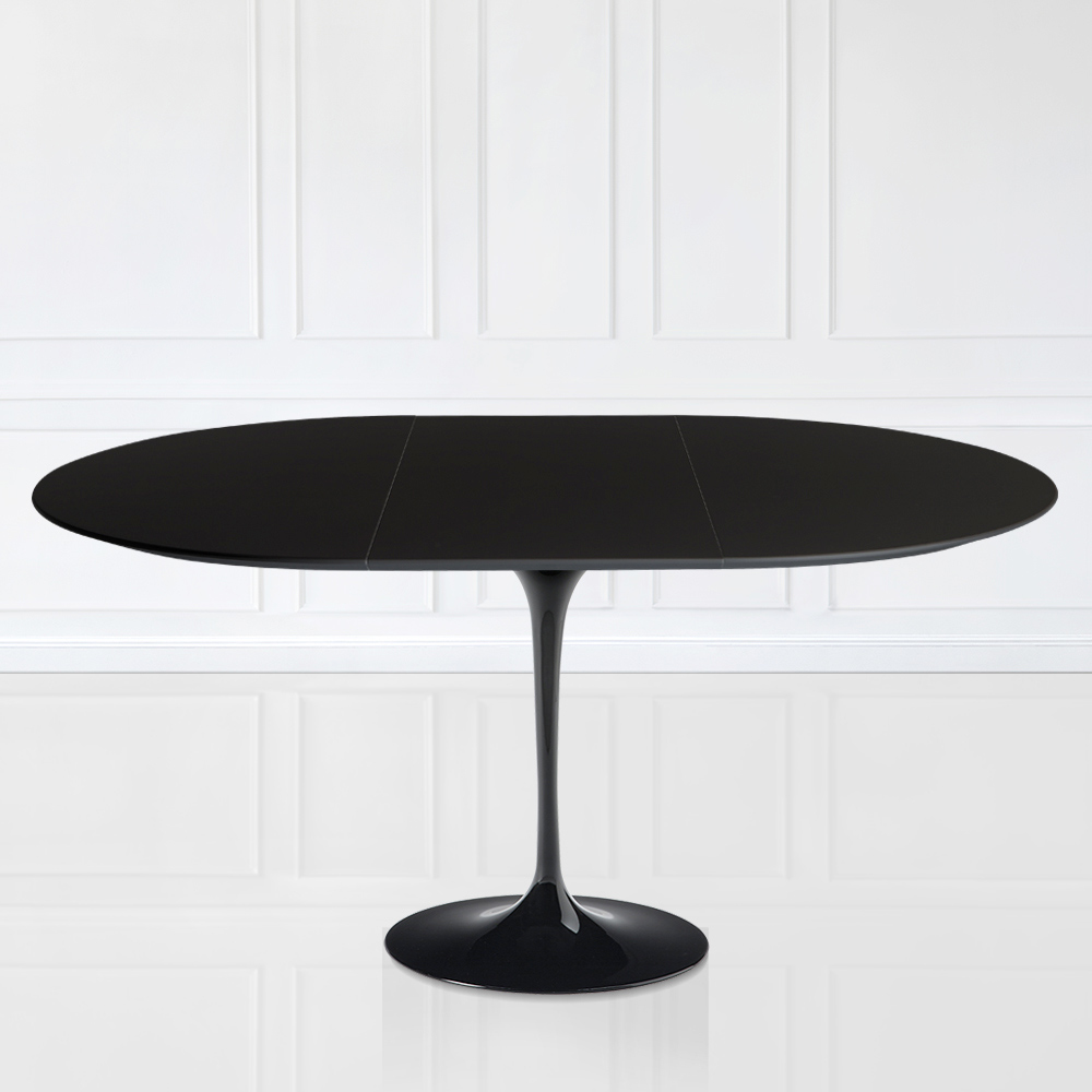 Masă de dining extensibilă până la 187 cm cu blat din laminat lichid negru și bază din aluminiu lustruit negru în întregime Made in Italy . Această piesă de mobilier răspunde nevoilor de funcționalitate și adaptabilitate ale oricărui mediu de living și bucătărie. Rafinată și cu linii simple, ea poate fi inserată în toate mobilierul pentru a completa mai bine fiecare cameră. Posibilitatea de a fi extinsă o face un element unic care răspunde nevoii de a avea mai multe mese, datorită și formei bazei care favorizează inserarea mai multor scaune. Această masă este ideea perfectă pentru a avea ceva original și elegant dar în același timp util pentru toate ocaziile și evenimentele.