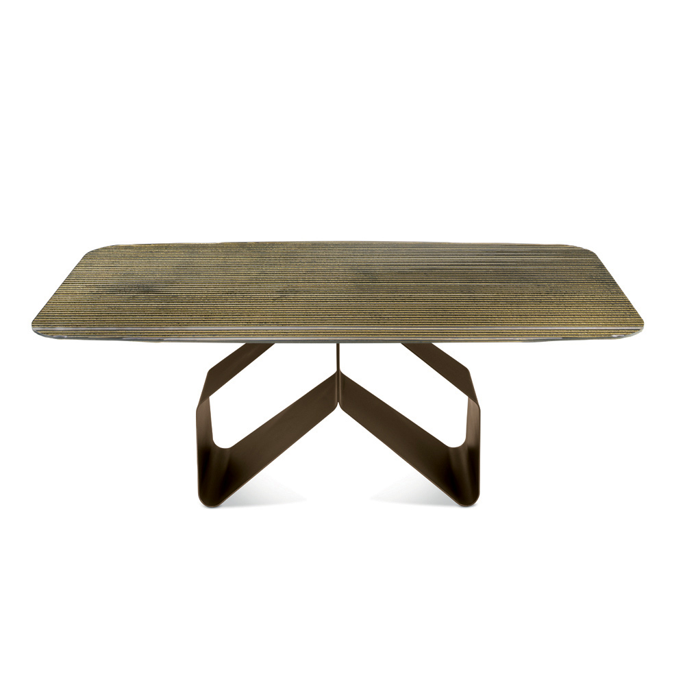 O masă elegantă de designer, fabricată în Italia , concepută pentru a mobila cu stil sufrageria sau livingul . Masa se remarcă prin baza sa originală din metal vopsit , cu o structură grafică ușoară și dinamică care amintește de două aripi stilizate, creând un impact estetic puternic, menținând în același timp un echilibru vizual deosebit.