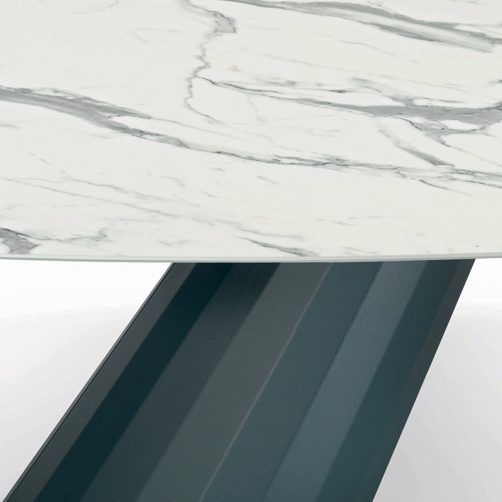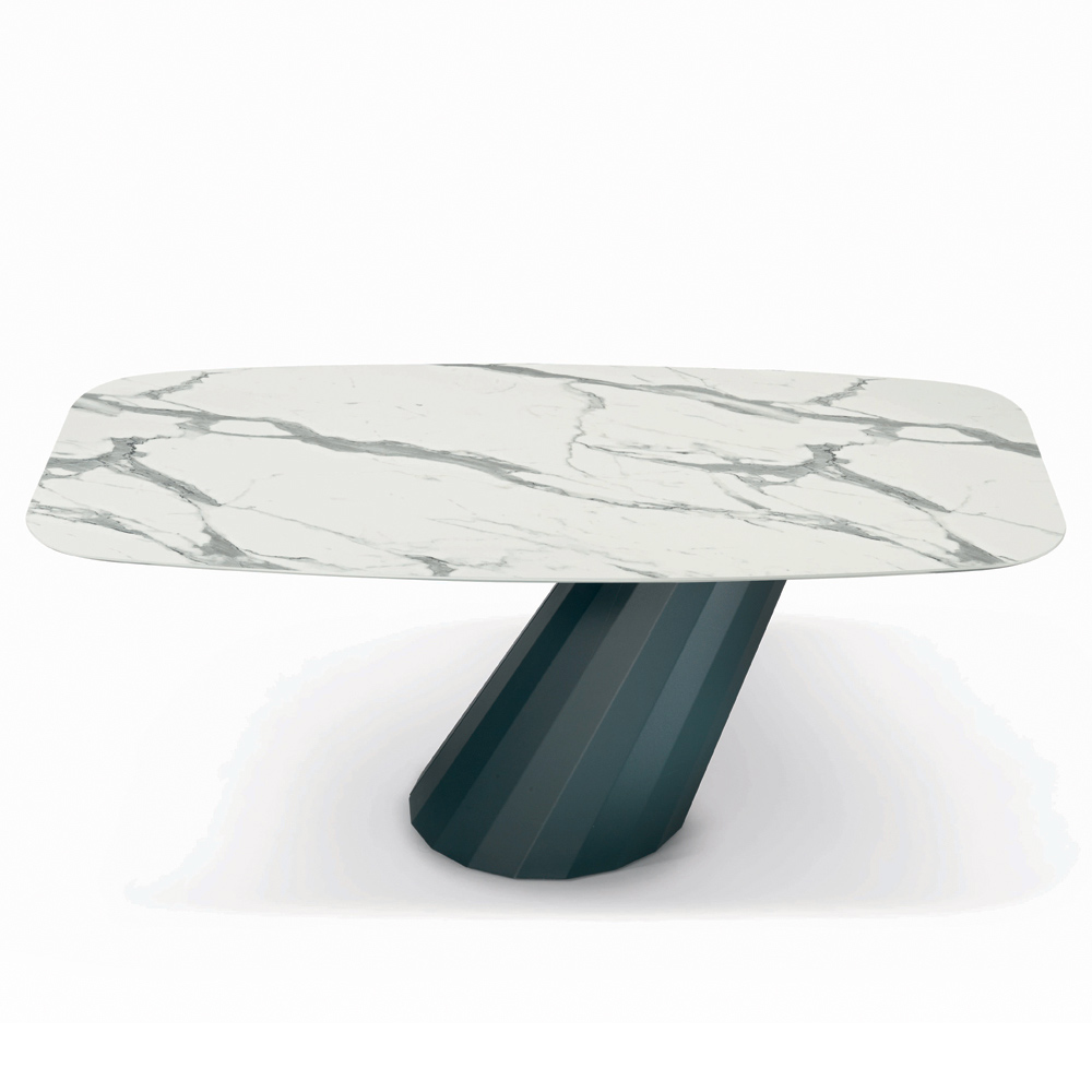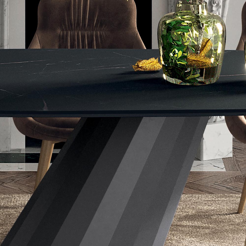 Rafinamentul formei bazei combinat cu finisajul blatului pe care îl alegeți creează o masă unică, cu un mare impact vizual, care amenajează cu