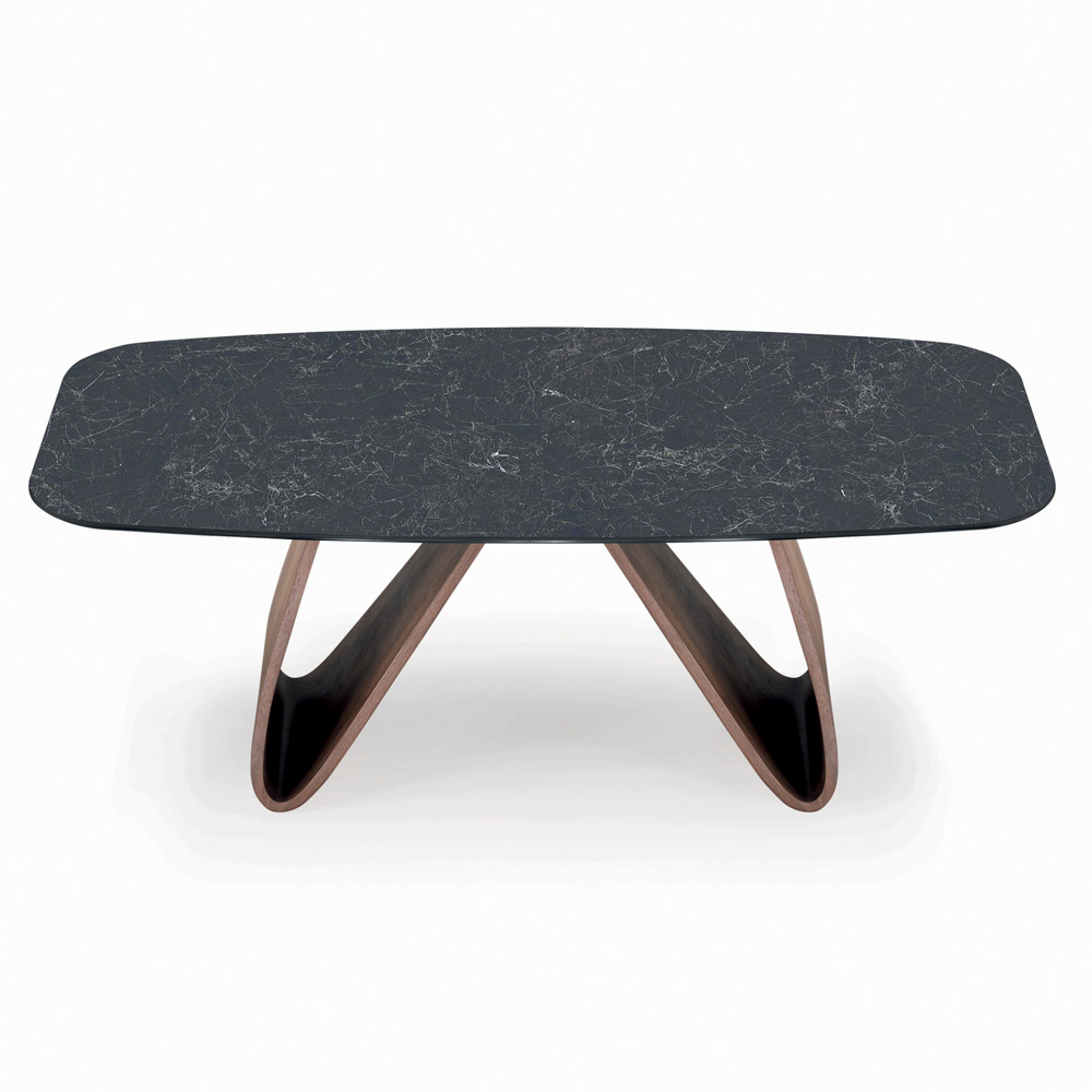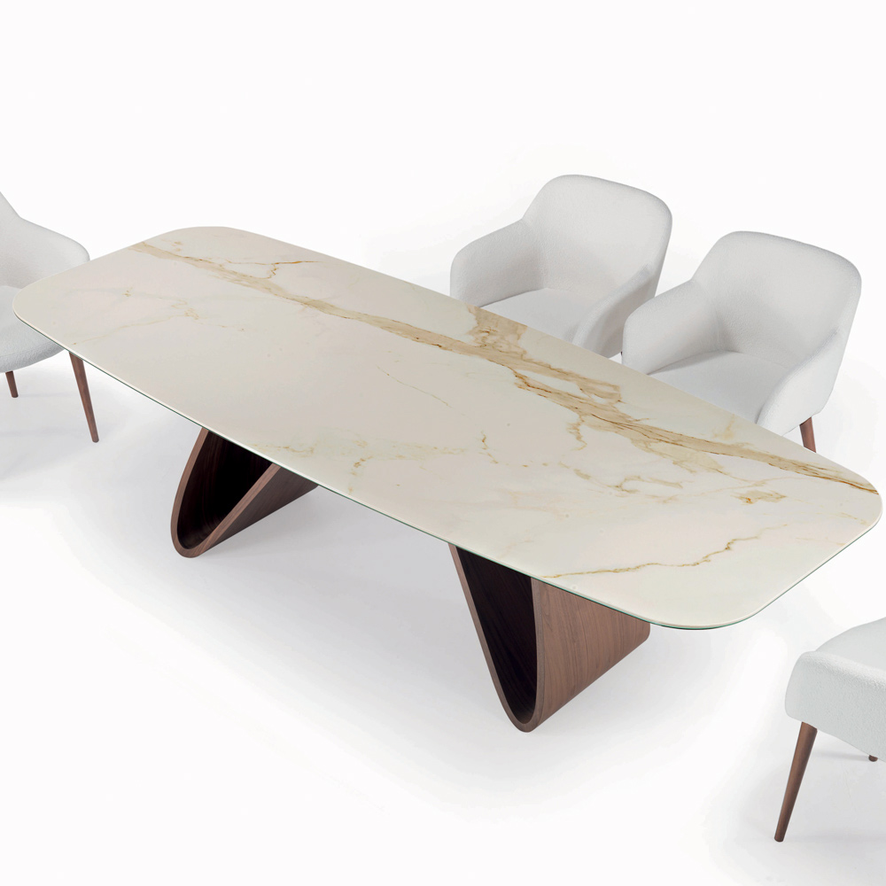 Datorită formei bazei și finisajelor disponibile, masa este capabilă să ofere o