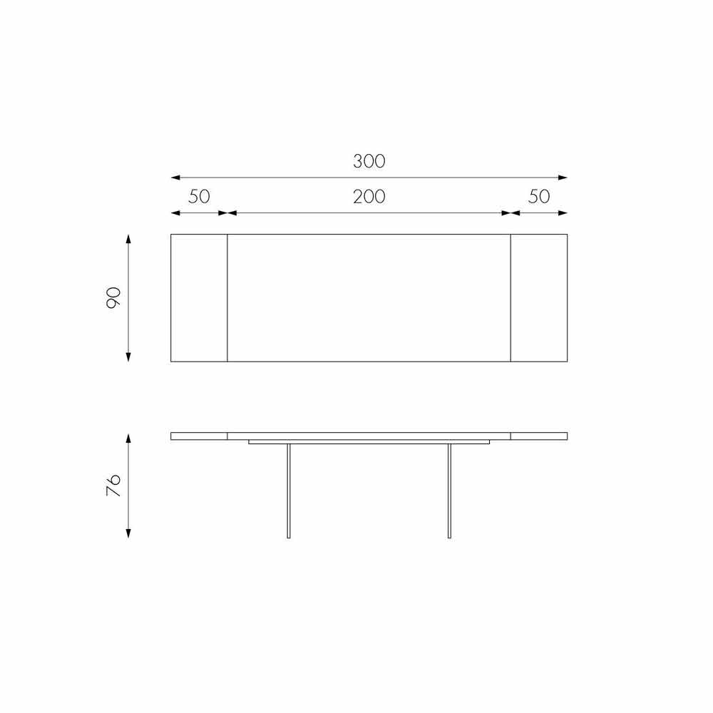 L200/300x D100x H 76cm; n° 2 extensii de 50 cm fiecare
