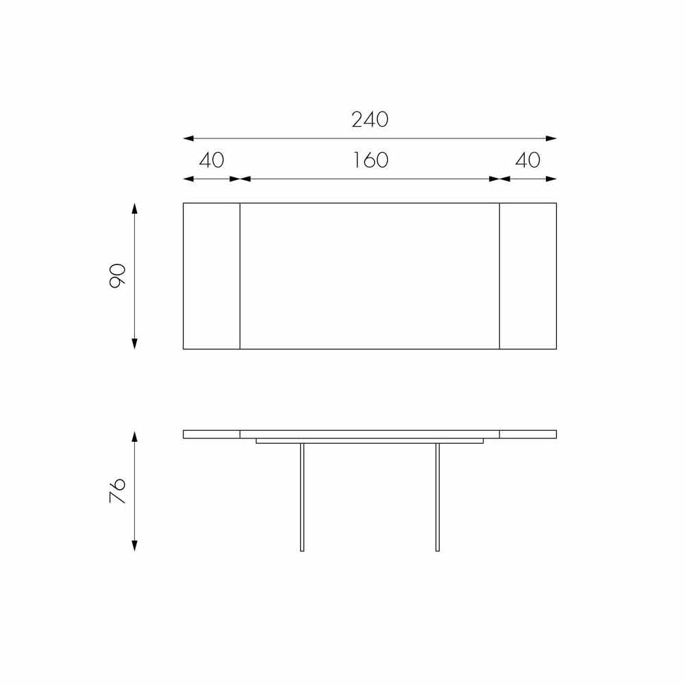 L160/240x D 90x H 76cm; n° 2 extensii de 40 cm fiecare