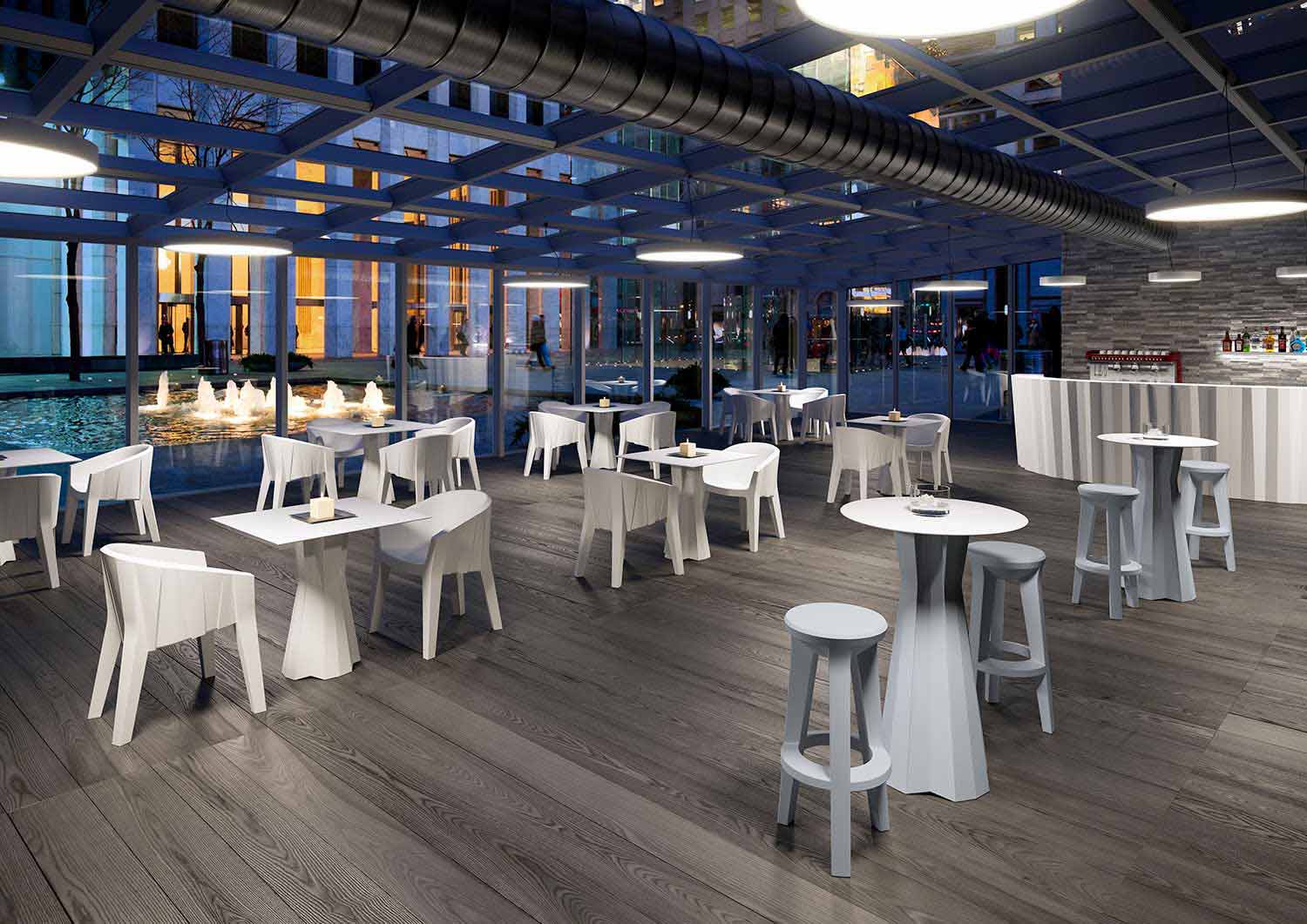 baze din polietilenă albă mată , care asigură stabilitate și rezistență excelente împreună cu rezistență la căldură, soare și șocuri. Ideal pentru a completa amenajarea mediilor cu un design modern și rafinat care necesită o notă de personalitate și stil.