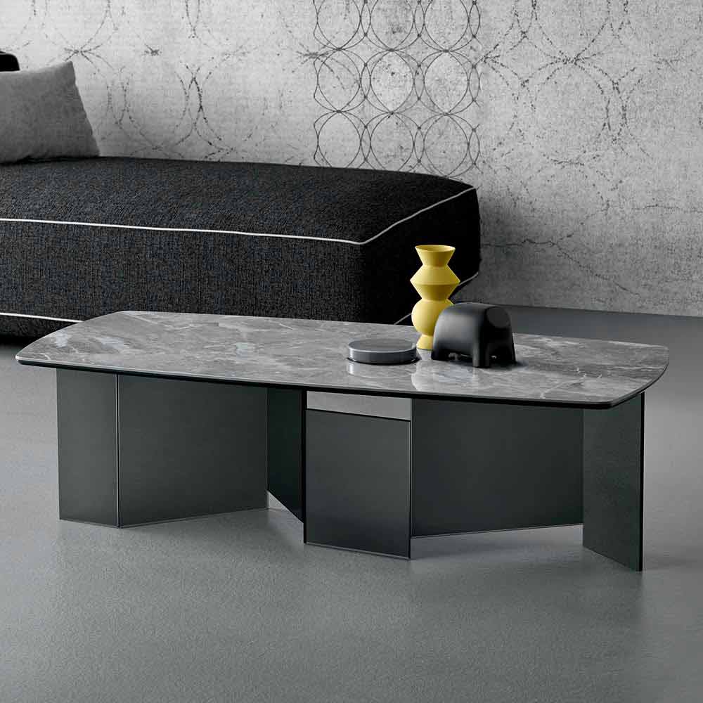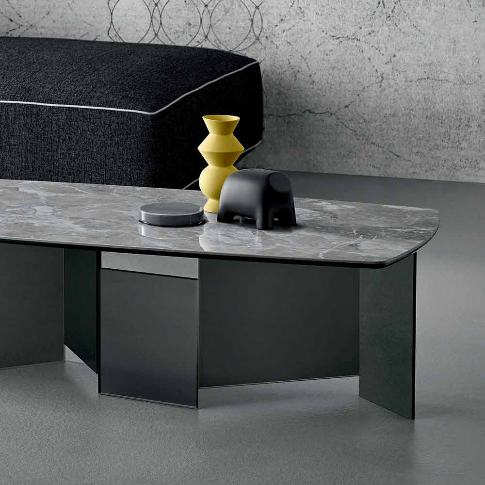 Fabricat din sticlă afumată pentru bază și un blat din ceramică gri lucios orobic , este o piesă de mobilier realizată manual în Italia cu materiale de înaltă calitate ideale pentru zona de zi.