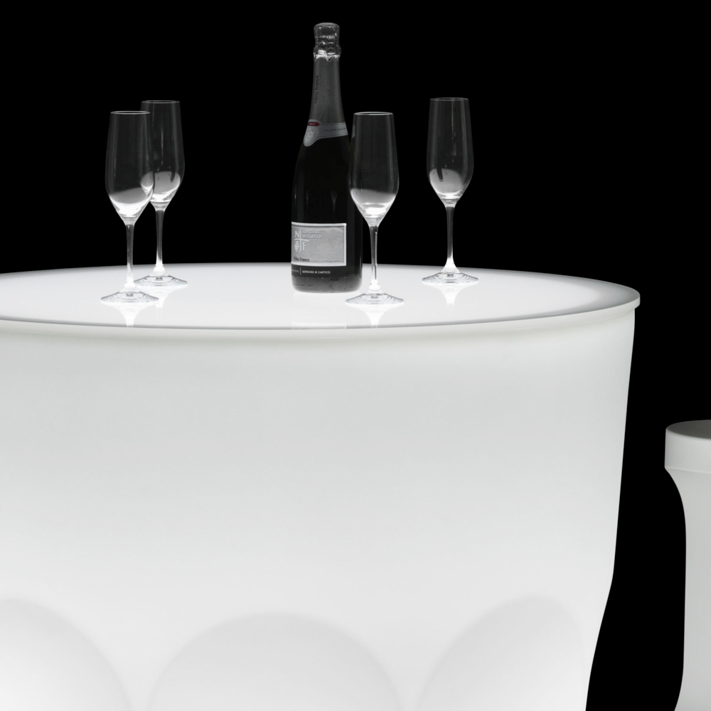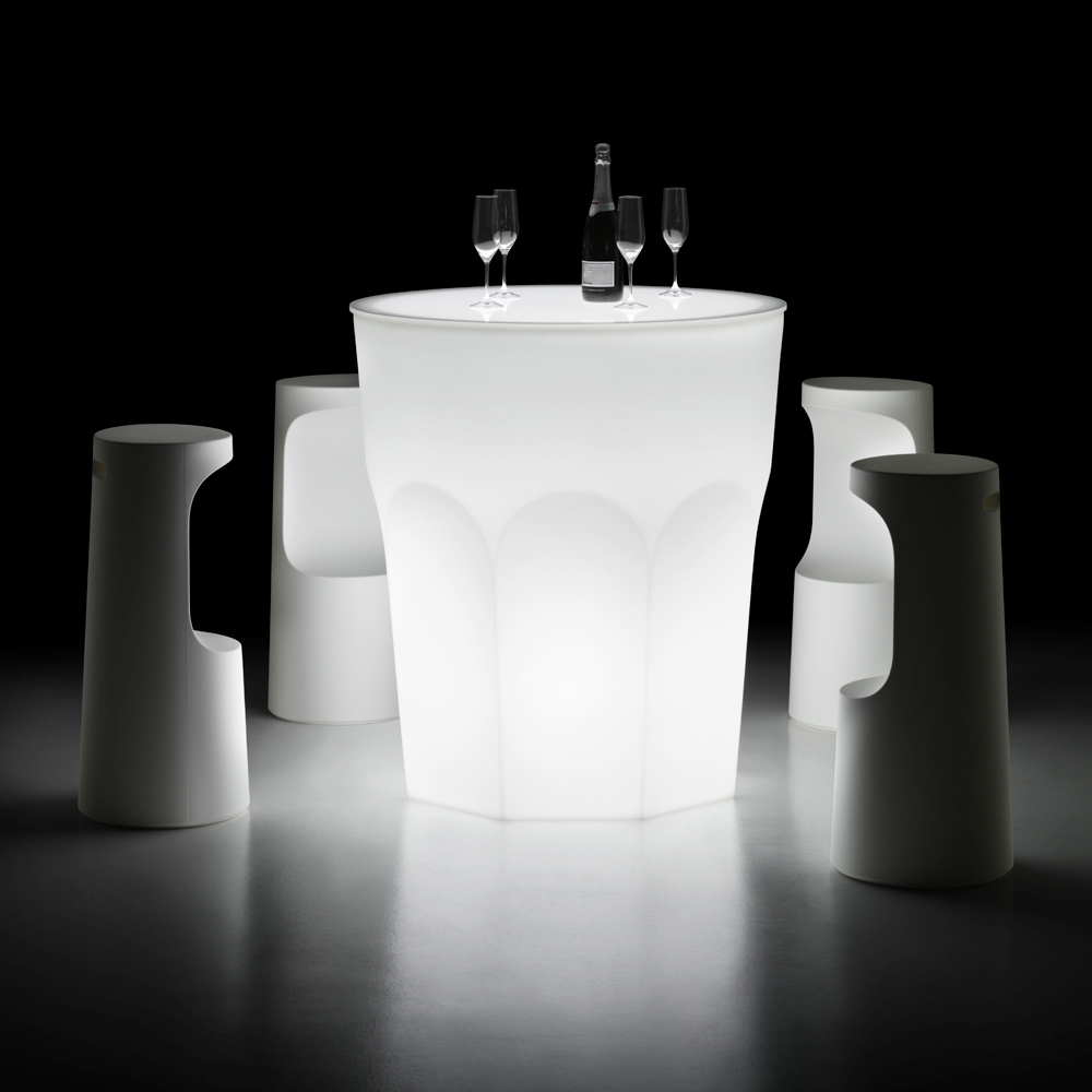 Masă de iluminat pentru exterior, din polietilenă, cu lumină LED Made in Italy.